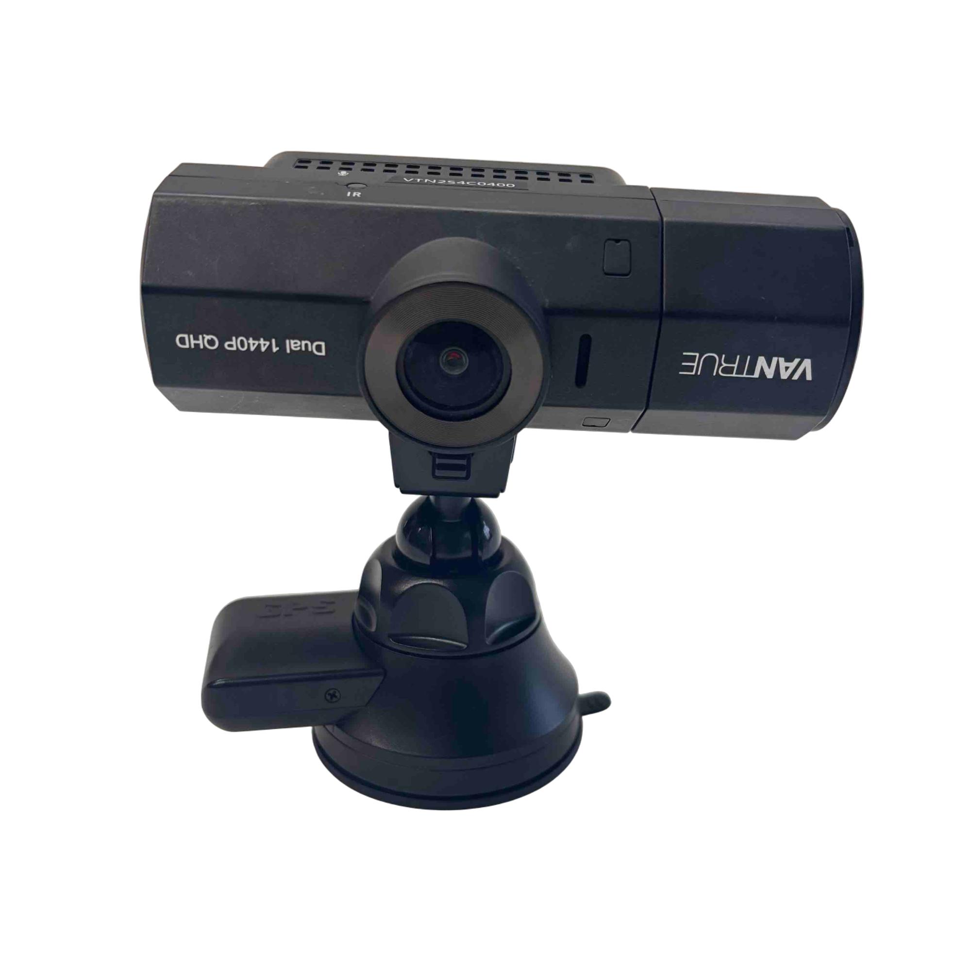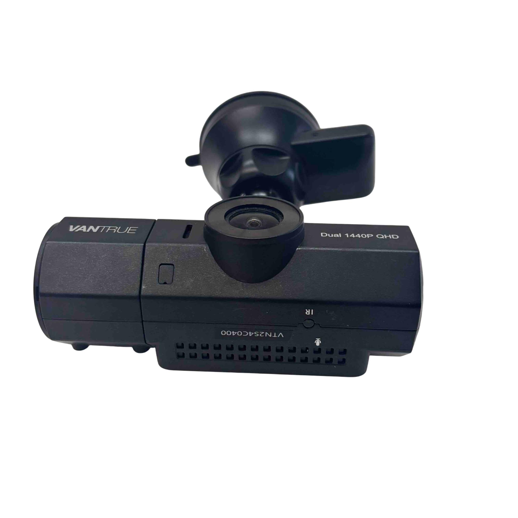 Vantrue N2 Pro Dual 1440P QHD Dash Cam (Model: VTN2S4C0400) features dual high-resolution 1440P QHD cameras designed for comprehensive in-car video recording. Equipped with infrared capabilities for improved night vision, this compact dash cam offers reliable footage capture with a sleek, black design and versatile mounting options.