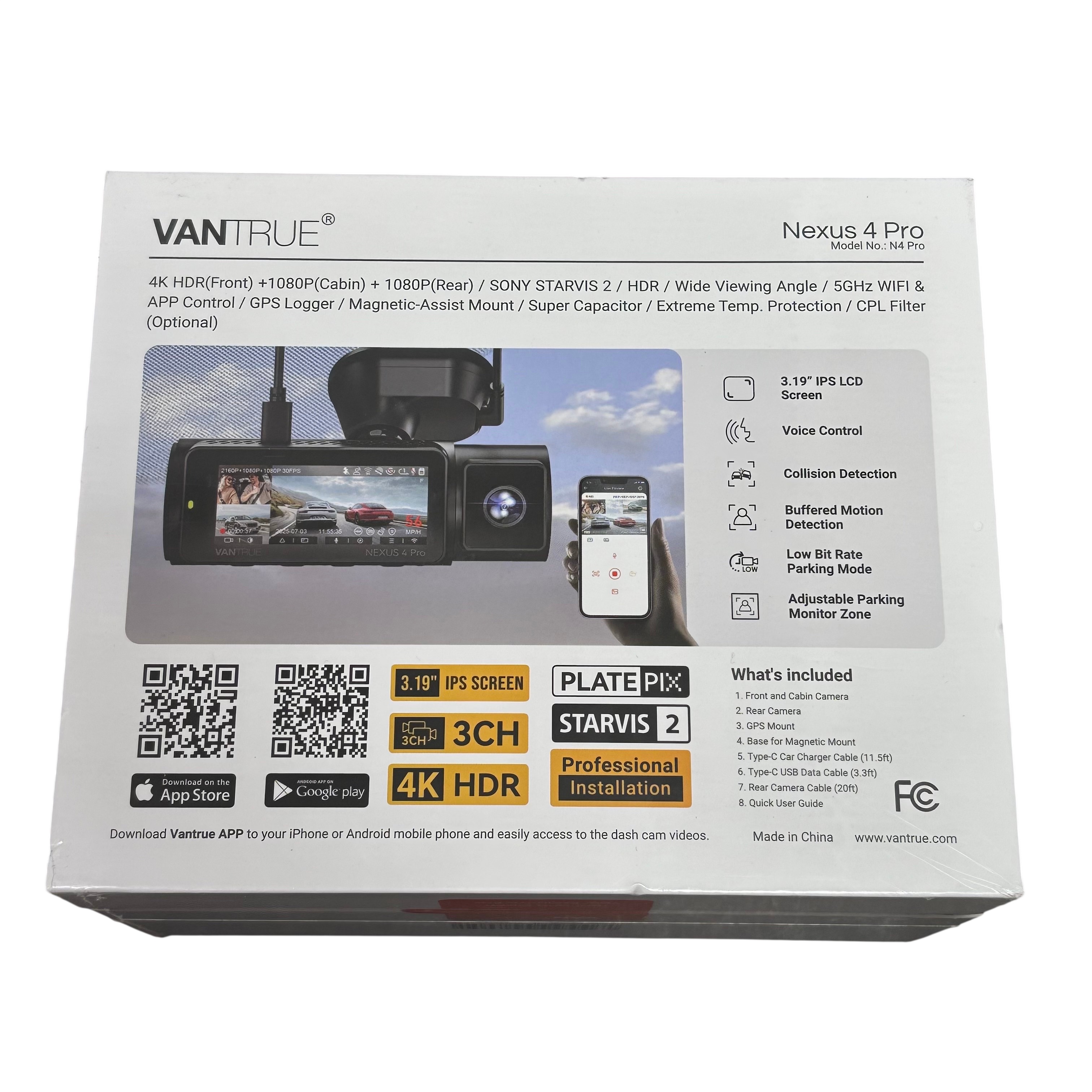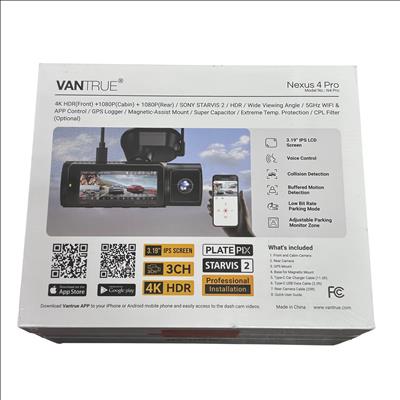 The Vantrue Nexus 4 Pro N4 Pro dash cam offers a comprehensive 3-channel recording system with 4K HDR front camera and 1080P cabin and rear cameras, all equipped with Sony STARVIS 2 sensors for exceptional video clarity. Featuring a 3.19-inch IPS LCD screen, 5GHz WiFi connectivity, and GPS logging, this dash cam ensures detailed footage and easy access via the Vantrue app.