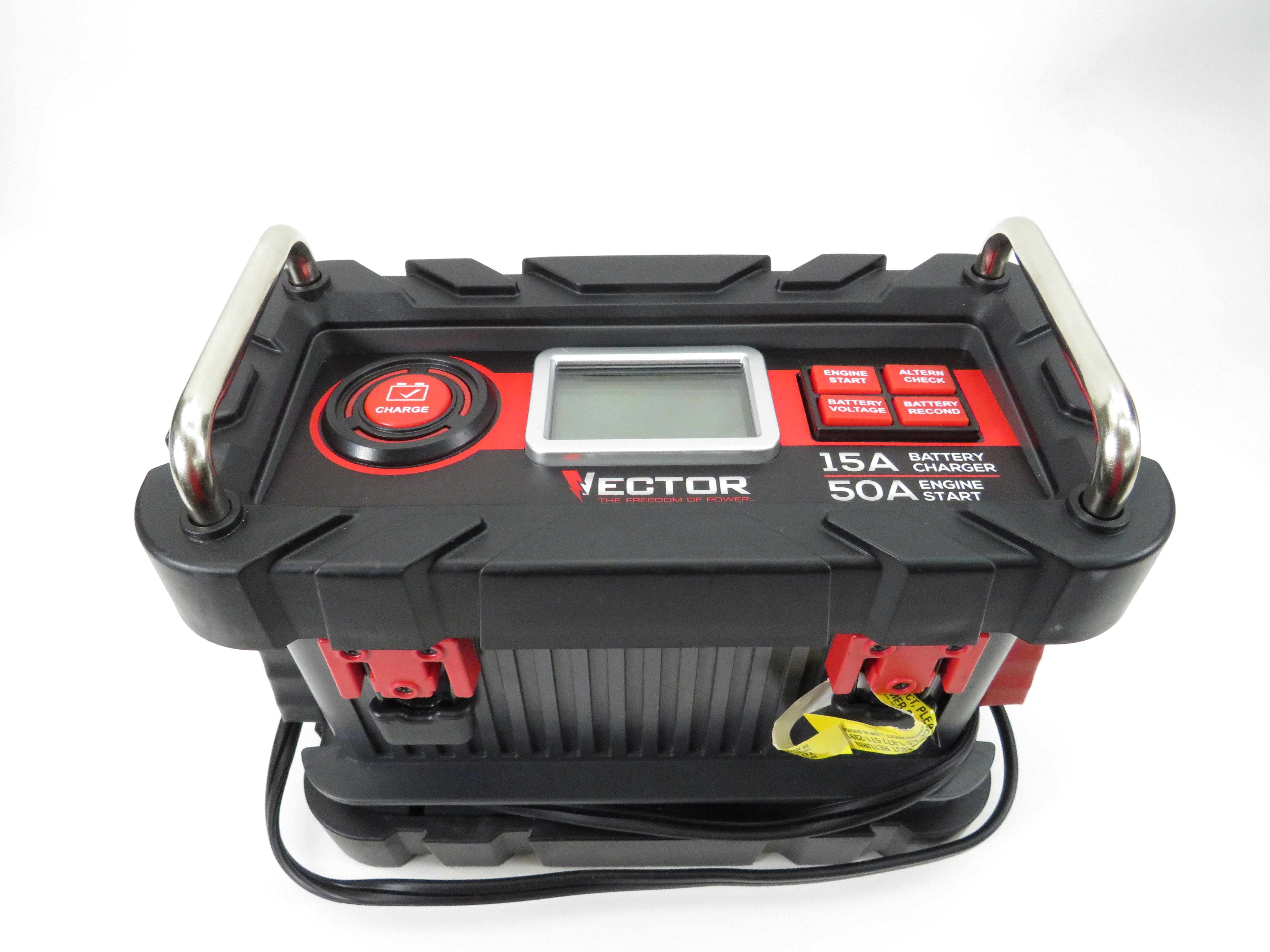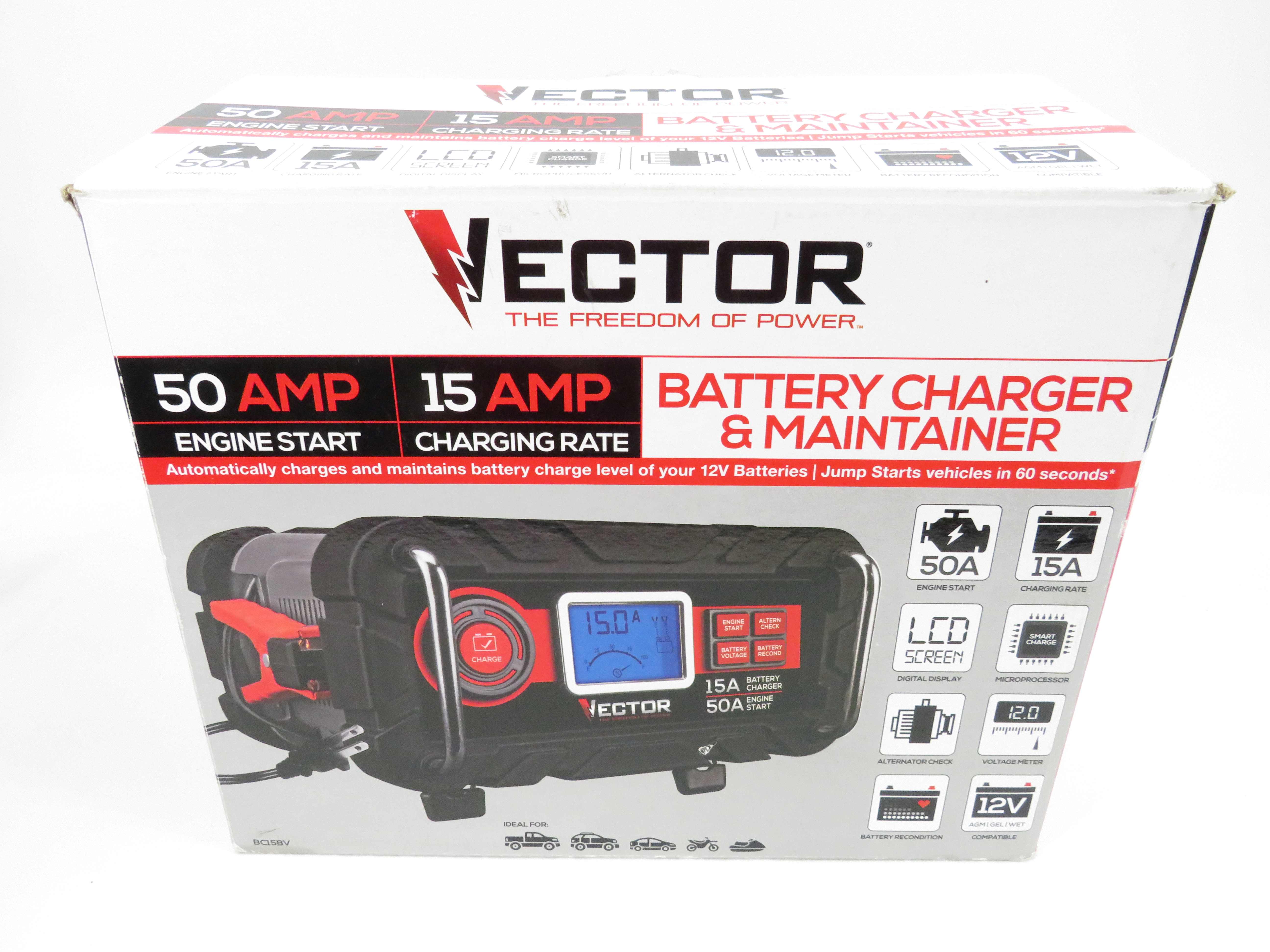 The VECTOR Battery Charger and Battery Maintainer, BC15BV, is a charger, maintainer, reconditioner and quick booster that also helps to extend battery life and reverse battery damage. It is designed for 12-Volt lead-acid batteries and is compatible with all AGM/GEL/WET battery systems. The 50 amp engine start gives you a quick boost of power to jump start vehicles in 60 seconds. The Smart Charge feature automatically selects charge rate and adjusts from rapid charge to trickle charge to maximize battery life and compensates for low voltage and temperature extremes. The patented alternator test lets you know when the alternator is operating out of range. Plus, the patented alternator test lets you know when the alternator is operating out of range. The integrated battery voltage tester automatically checks battery and indicates battery voltage level. Electric pulse technology acts as a battery reconditioner and can help reverse sulfate build-up on battery plates to improve charging carrying capability and extend battery life. You can put your confidence in because we have been delivering quality products for over 25 years.
