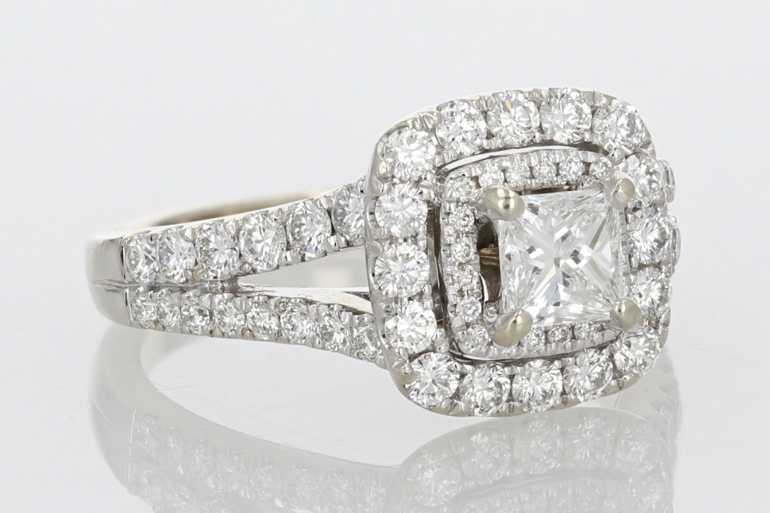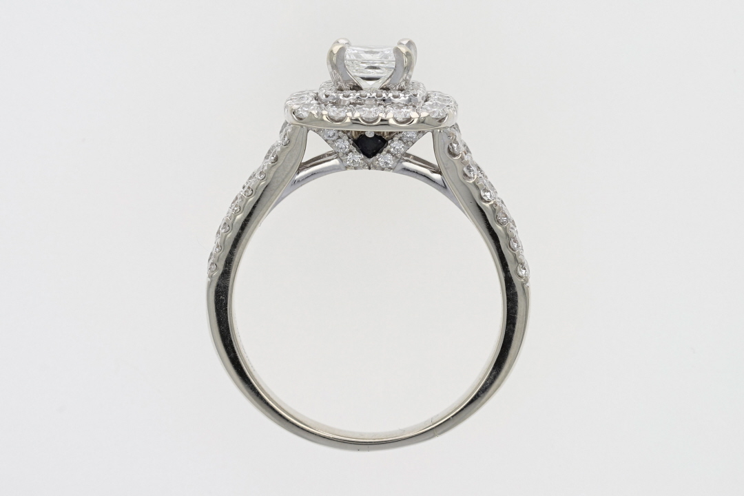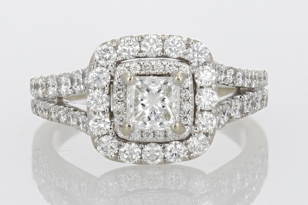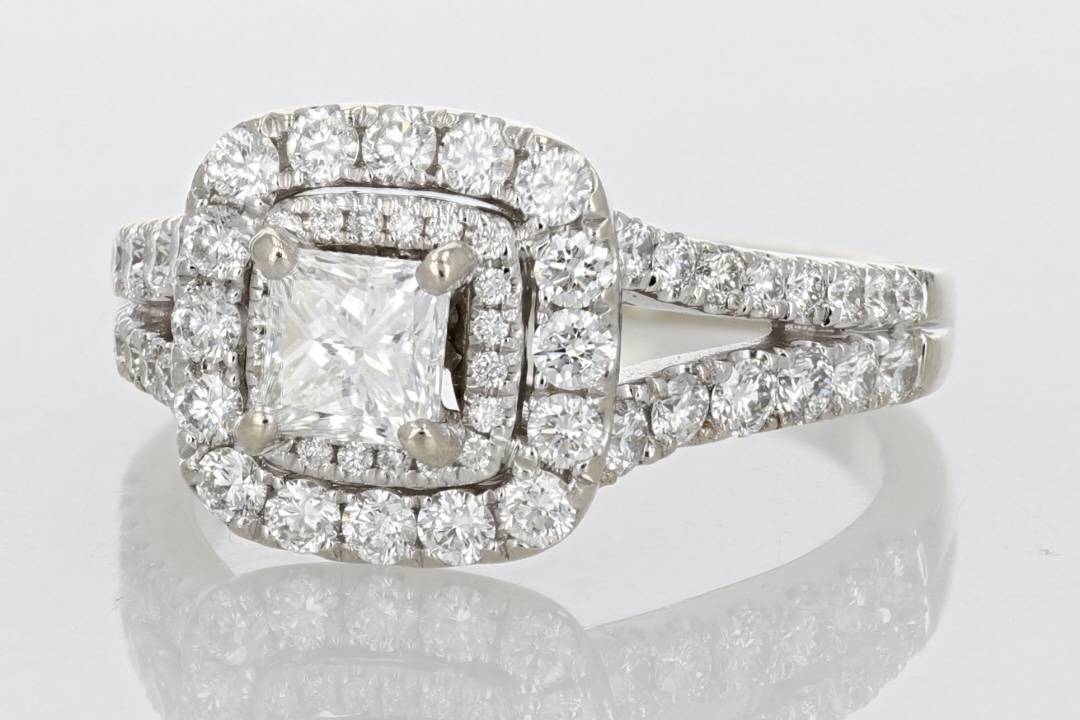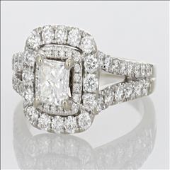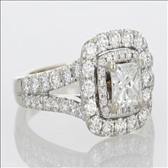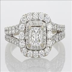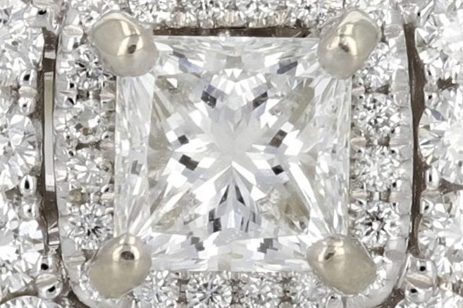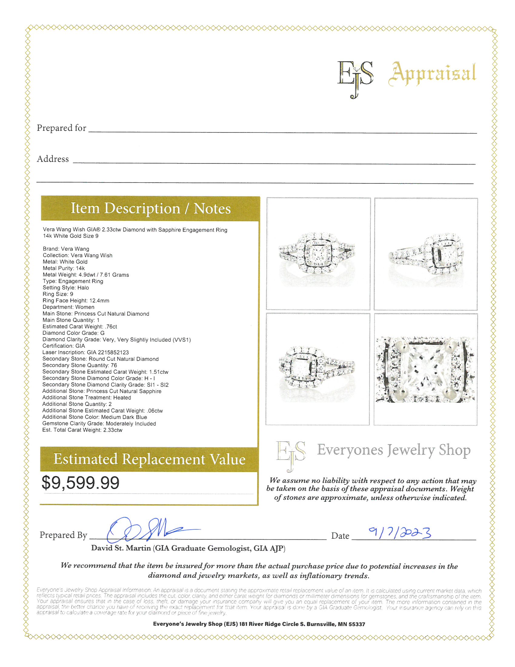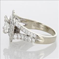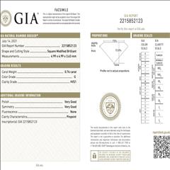 The primary diamond is laserscribed with GIA 2215852123 on the girdle.