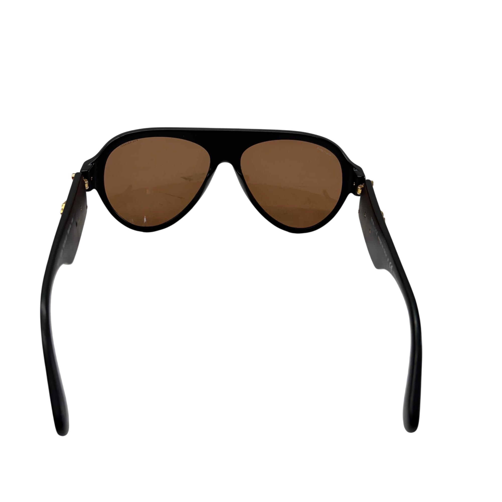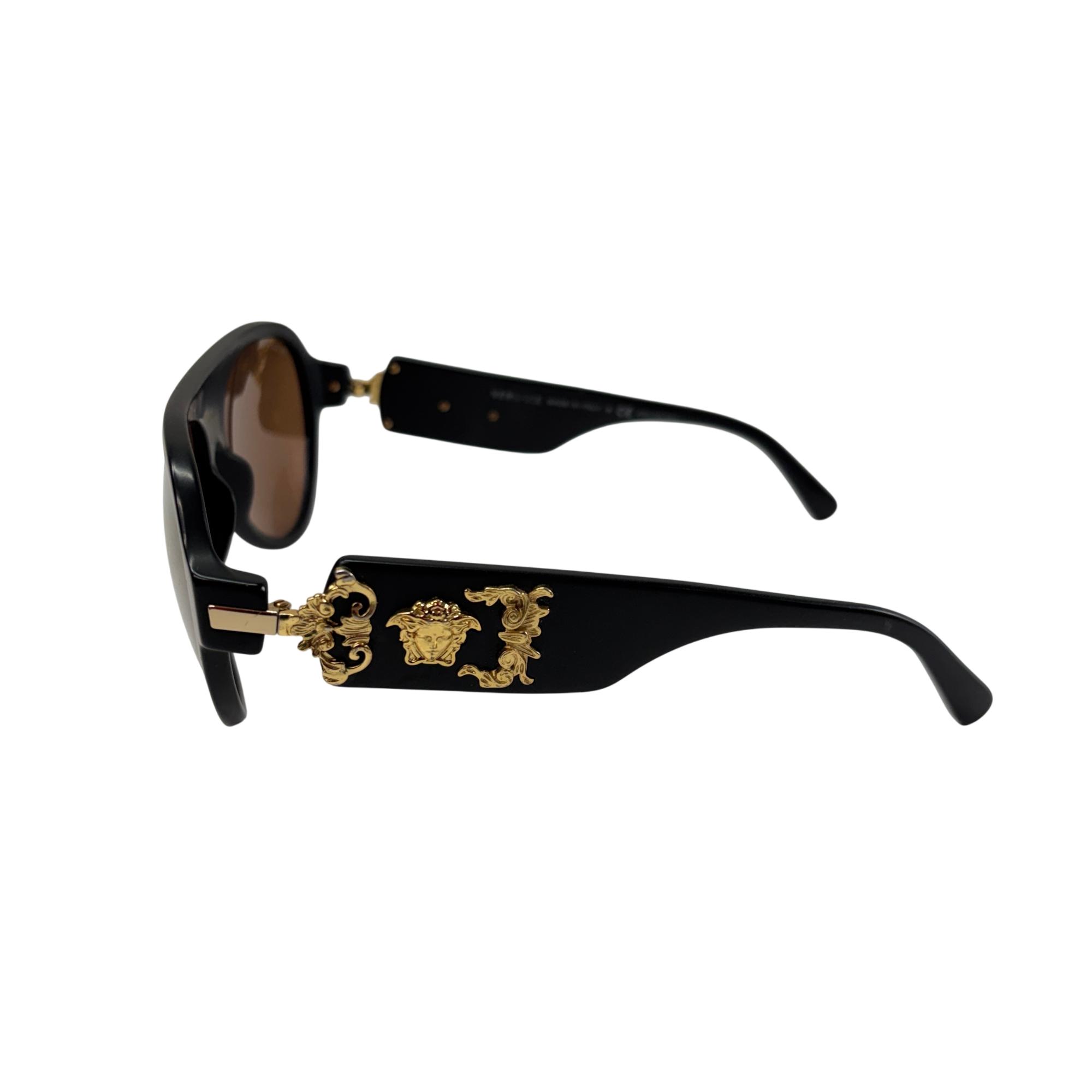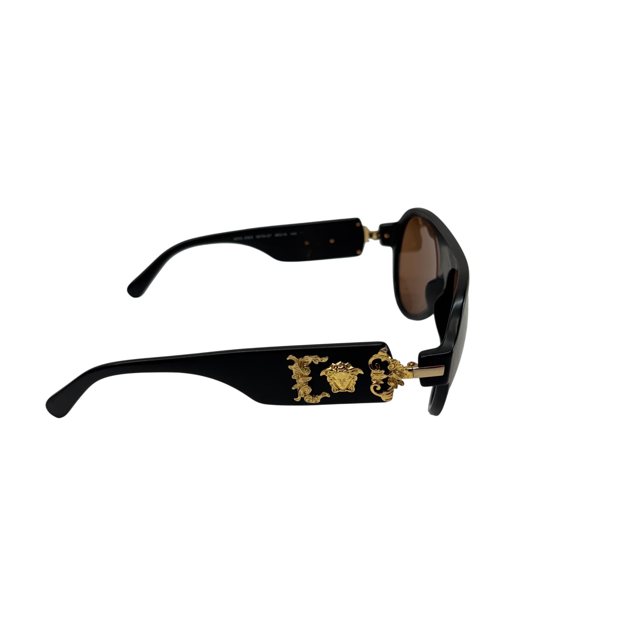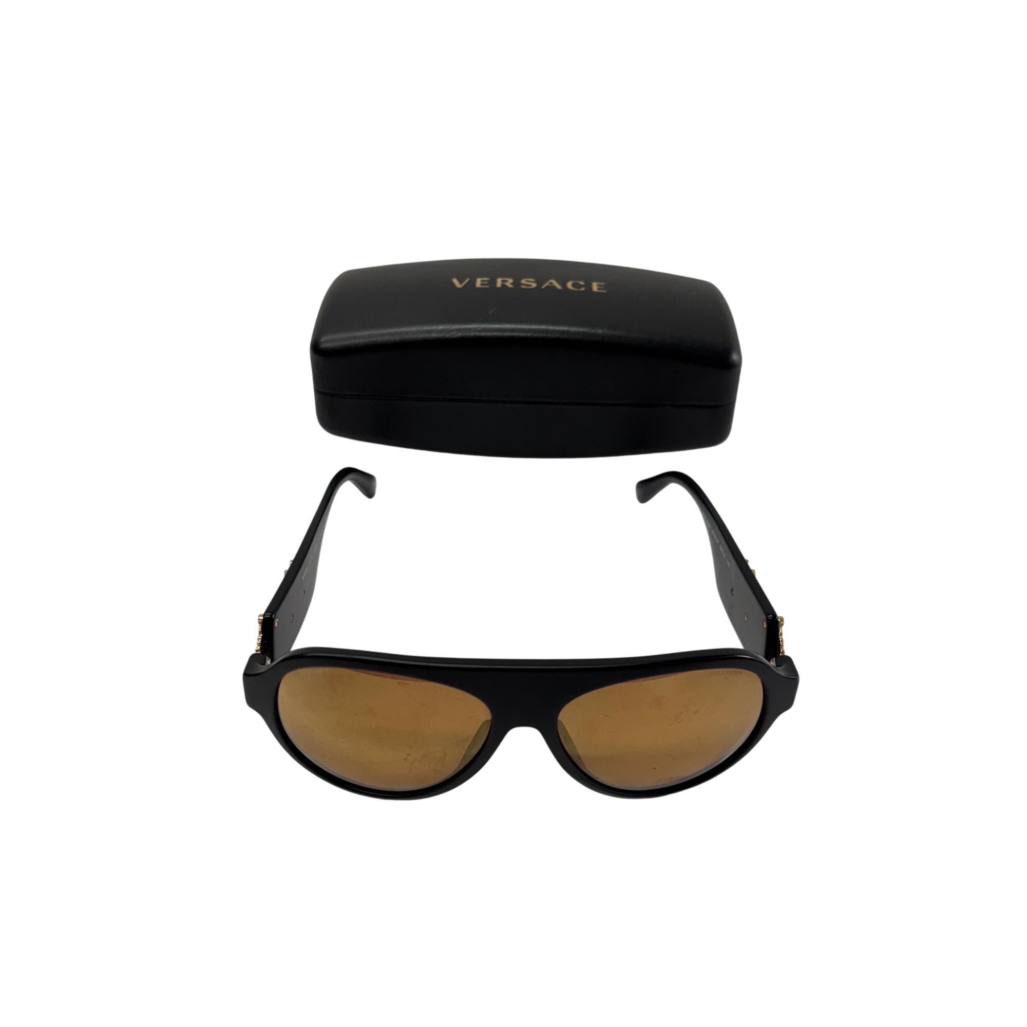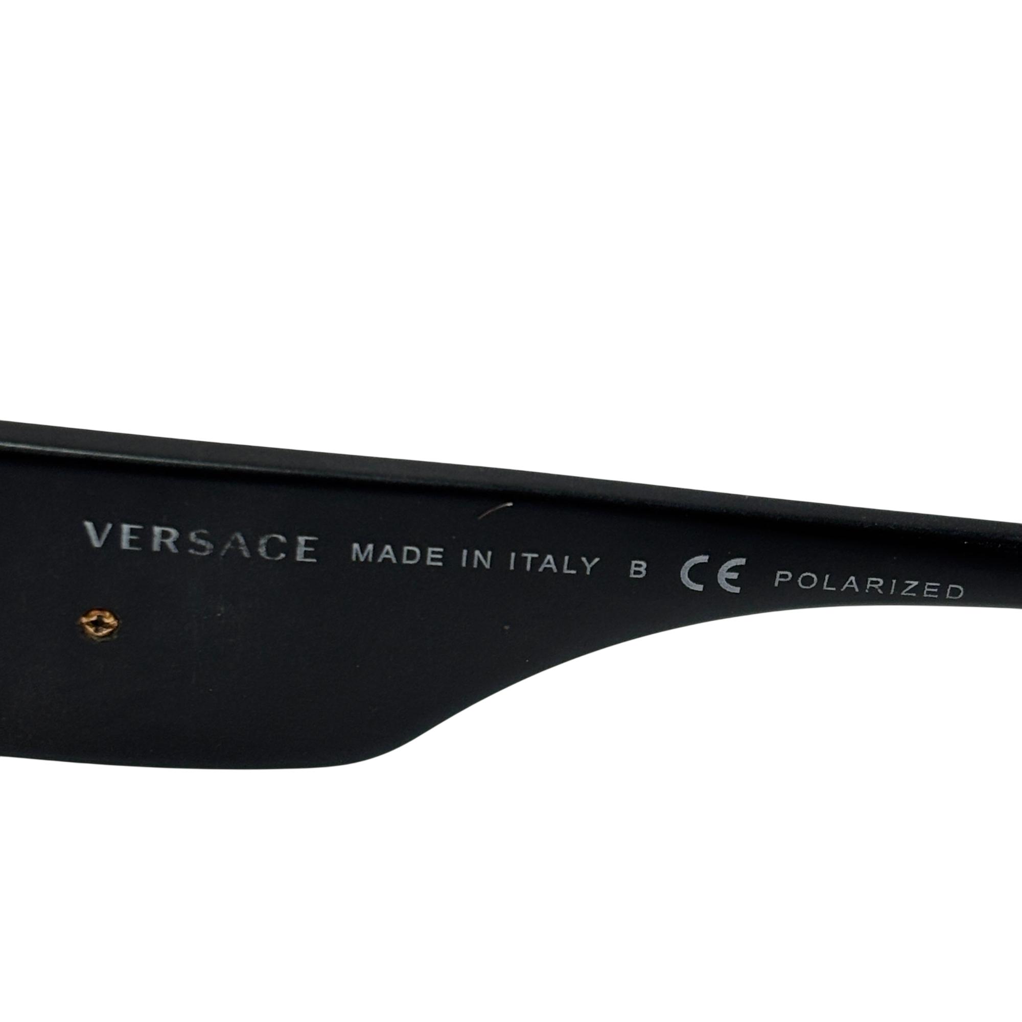 Versace Sunglasses VE 4323 5079/2T feature polarized brown lenses designed to reduce glare and enhance visual clarity. These sunglasses showcase a polished black frame that provides both durability and a sleek, stylish look suitable for unisex wear. Crafted to combine fashion with function, they offer superior vision care and protection in a distinctive designer style.