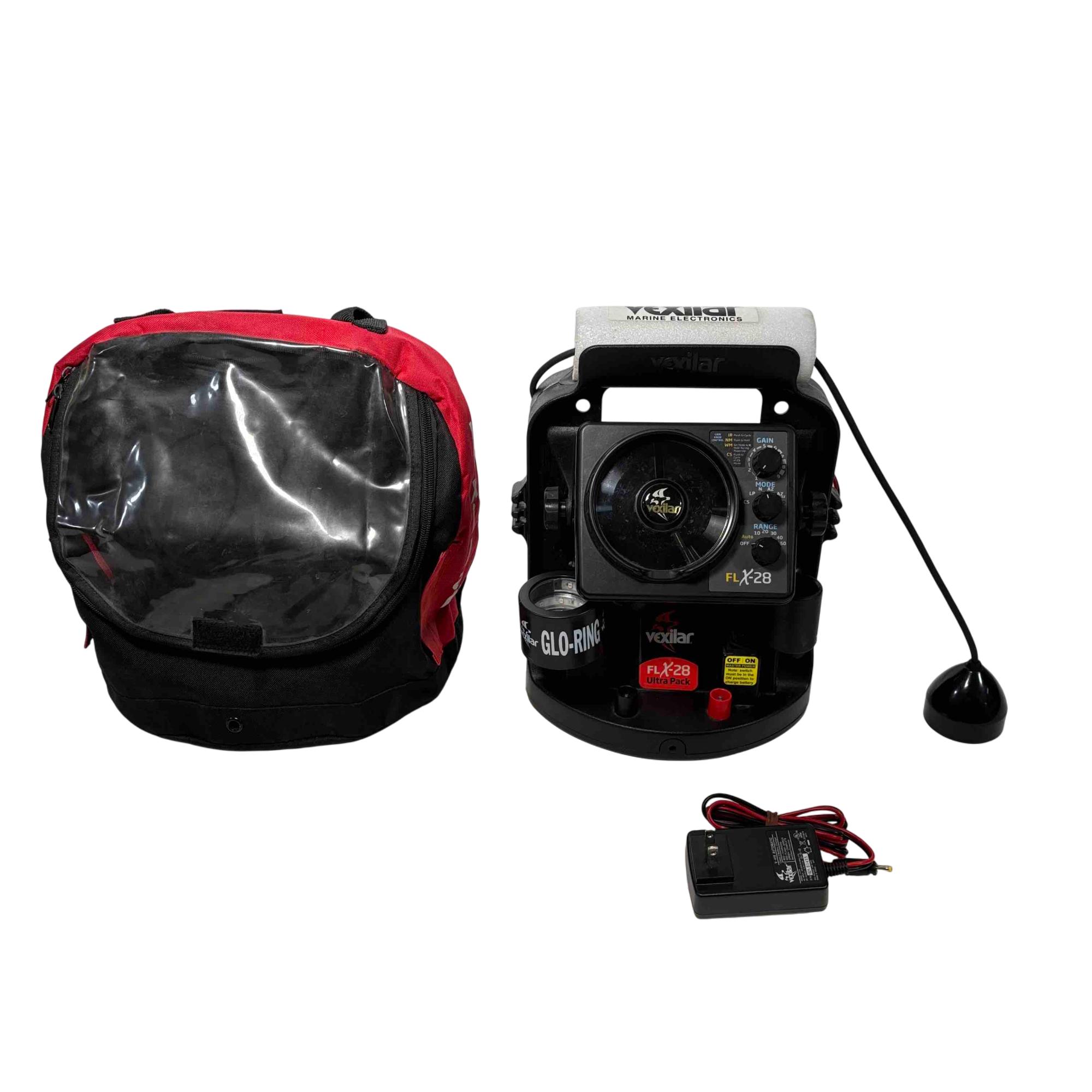 Experience the ultimate in ice fishing technology with the Vexilar FLX-28 Ultra Pack GLO-RING. This top-of-the-line marine electronics system comes complete with a charger and a stylish red bag for easy transport. Perfect for serious anglers, it features advanced sonar capabilities, a powerful battery, and a user-friendly interface to ensure you never miss a catch.