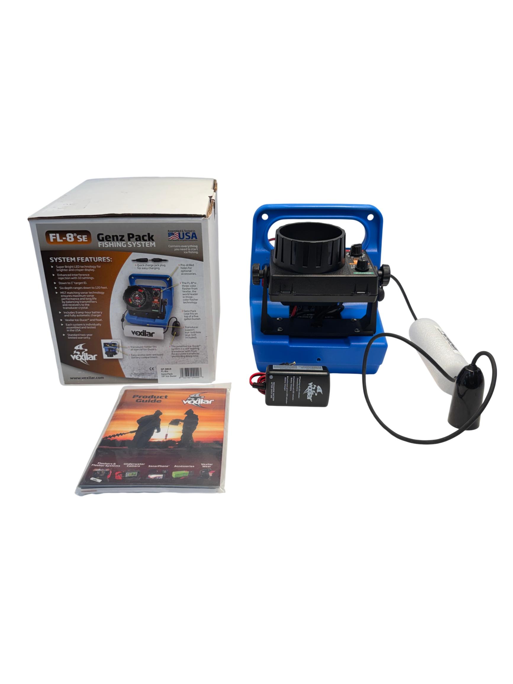 The Vexilar FL-8SE Genz Pack Ice Fishing Sonar System is an advanced fish finder designed specifically for ice fishing enthusiasts. It features super bright LED technology and a crisp display, offering six depth range settings down to 120 feet with exceptional sonar performance through patented transducer technology. This system provides precise target identification and reliable underwater readings, enhancing the ice fishing experience with superior accuracy and clarity.