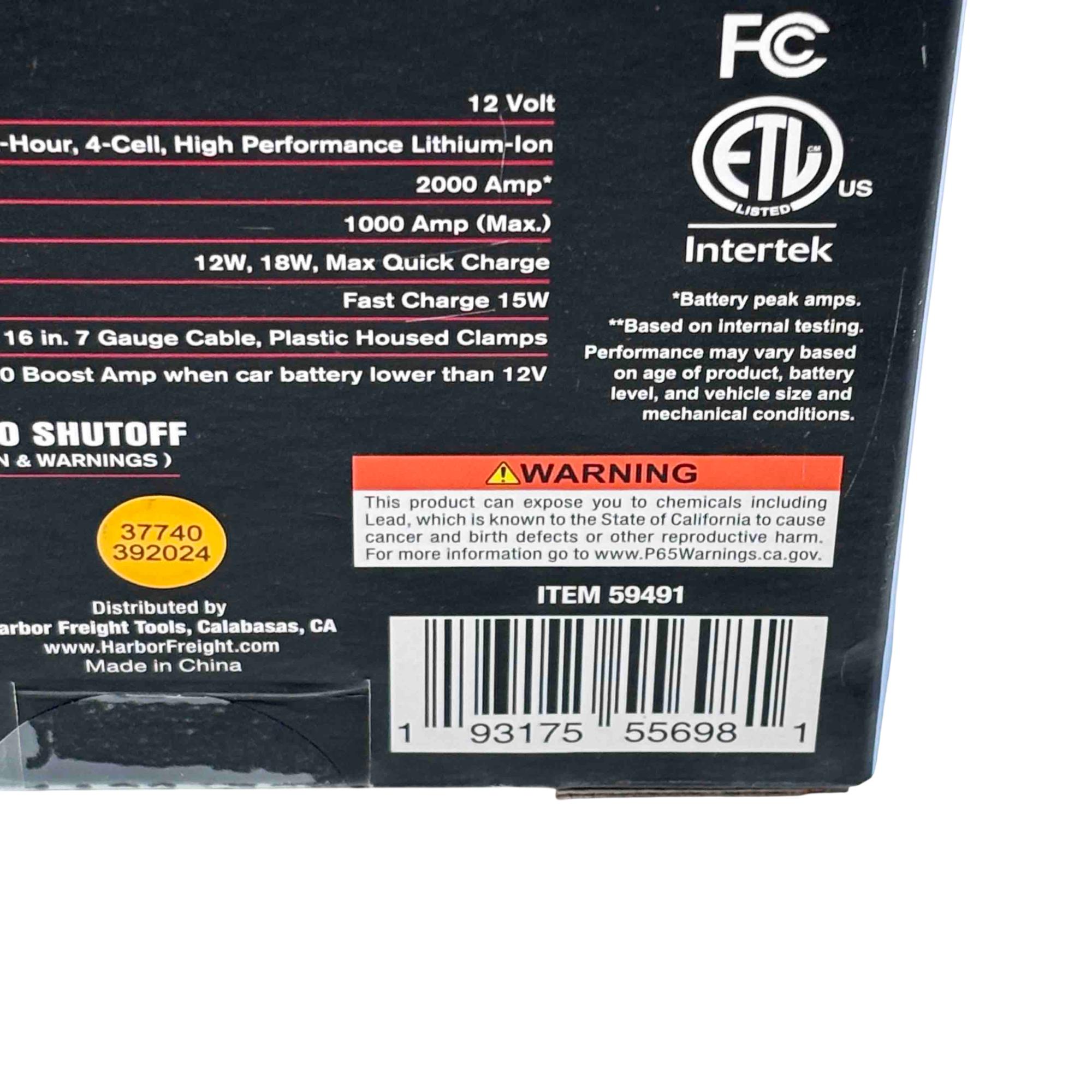• Type: Lithium-Ion 2000 Peak Amp Jump Starter/Power Bank