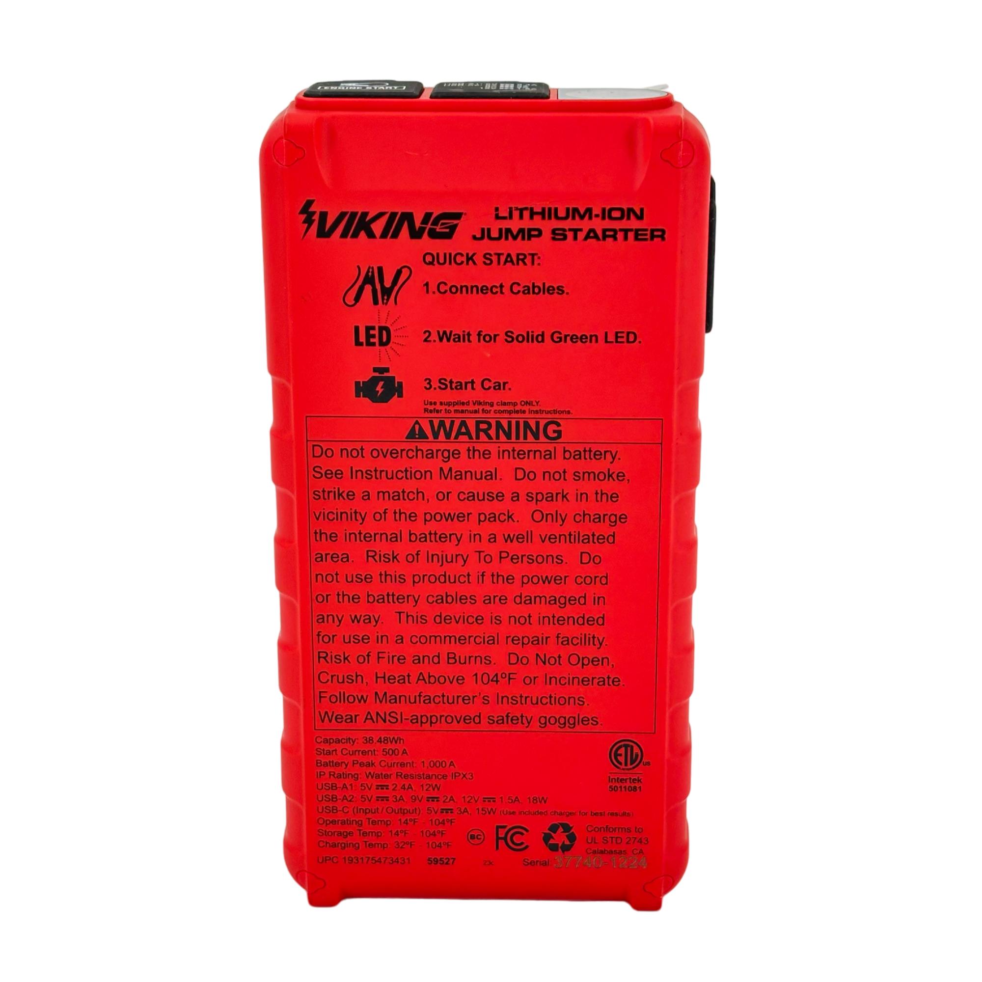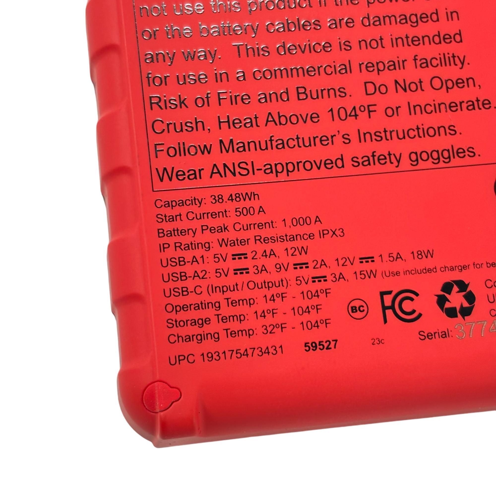Rapid charging 15 watt USB-C port for recharging jump starter and electronic devices