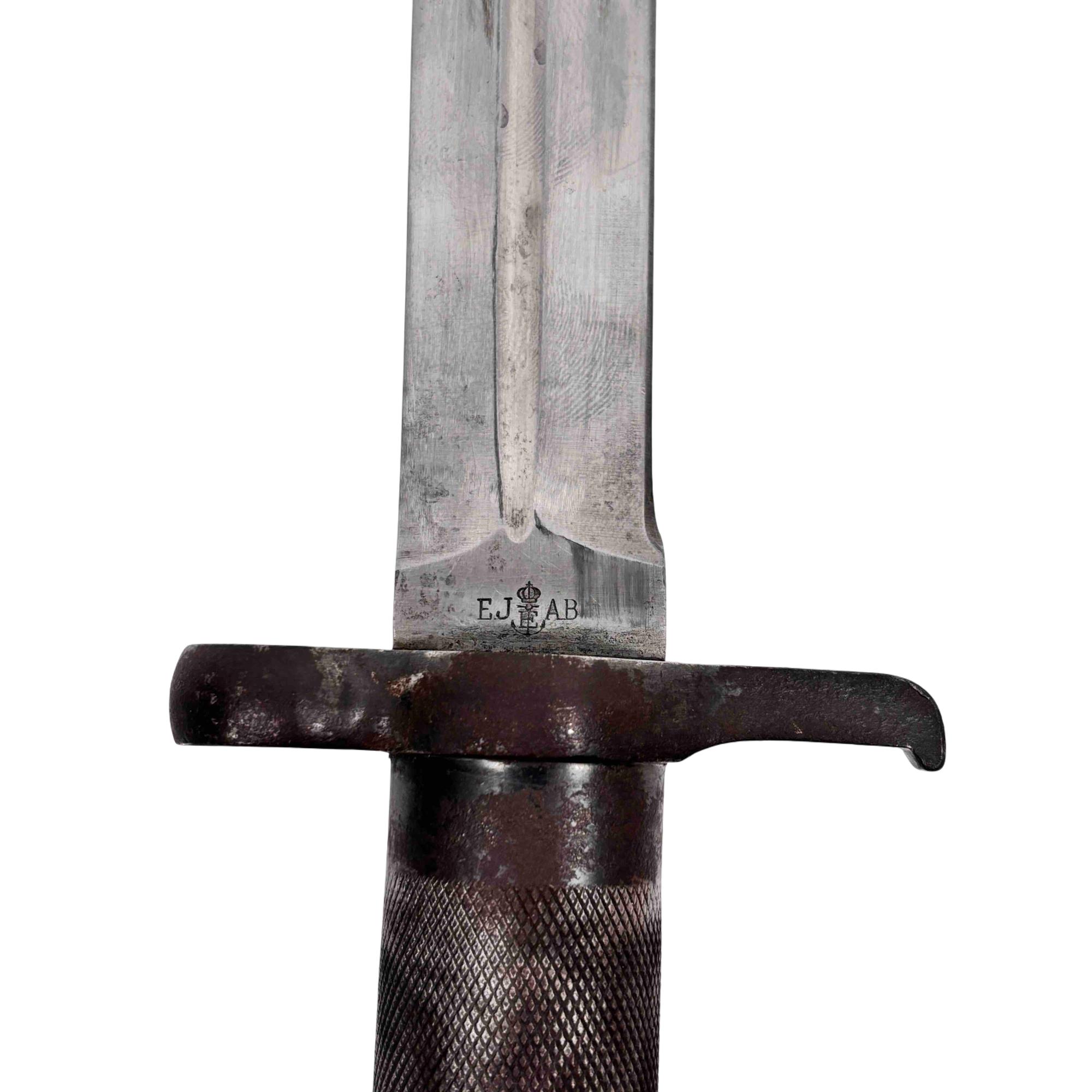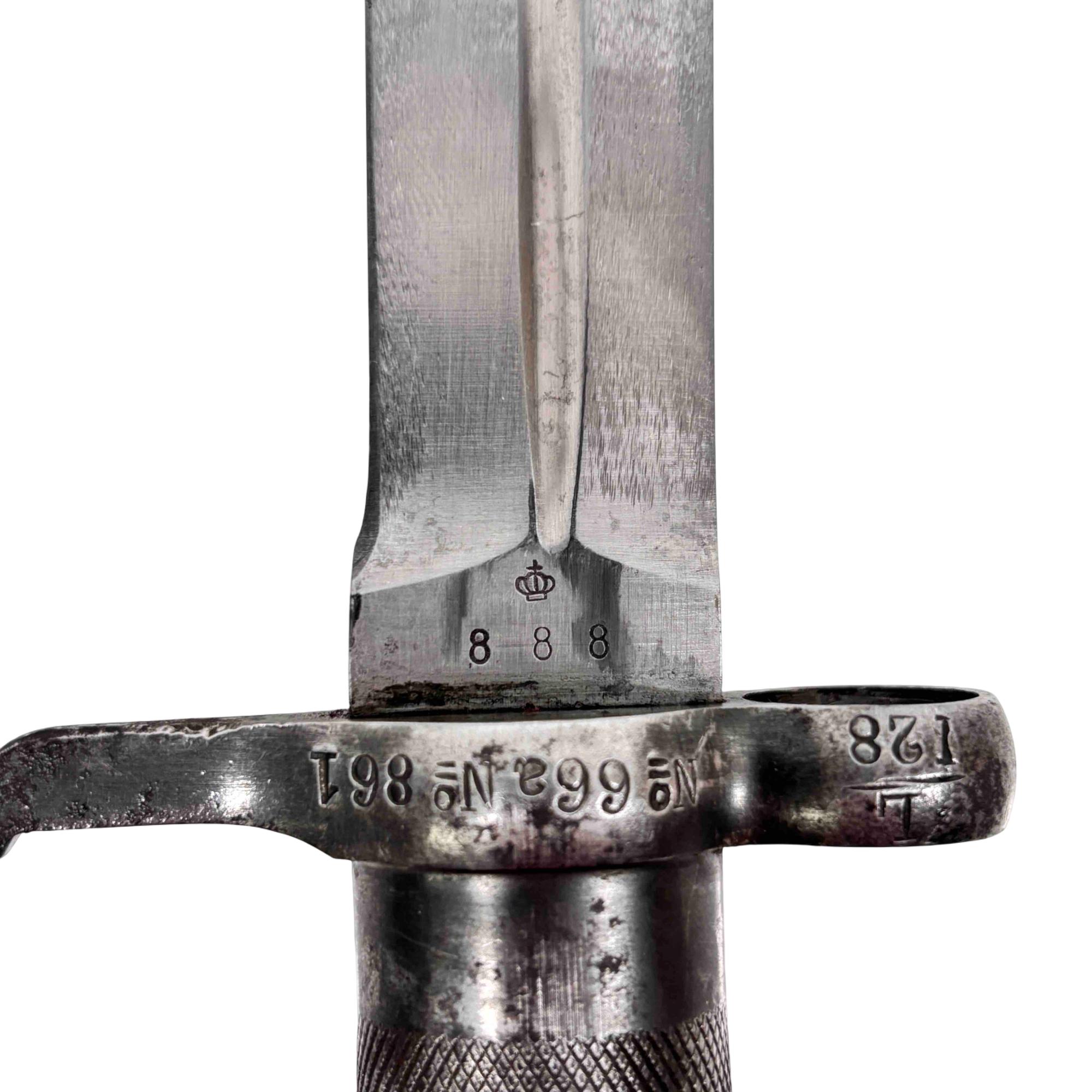Step back in time with this exquisite Sweden 1896 bayonet, featuring a sleek black handle and a protective sheath. This historical piece is perfect for collectors and enthusiasts who appreciate the craftsmanship of antique weaponry. Don't miss your chance to own a piece of history that combines beauty and functionality.
