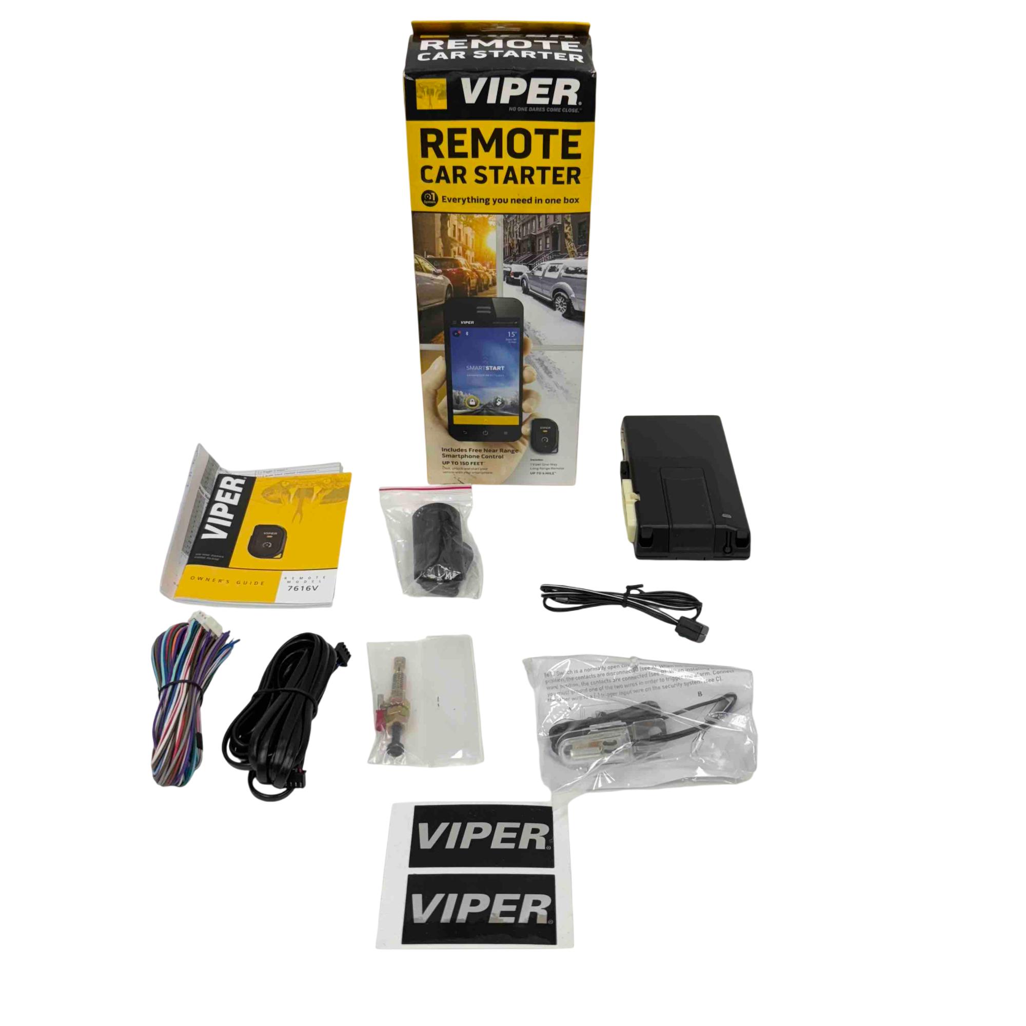 Upgrade your vehicle security and convenience with the Viper 7616V Remote Car Starter Kit. This kit includes the owners guide, a key fob, wiring harnesses, assorted installation components, and bold Viper decals for your car. Enjoy advanced features like smartphone control up to 150 feet, reliable remote start functionality, and trusted Viper protection—all in one box.