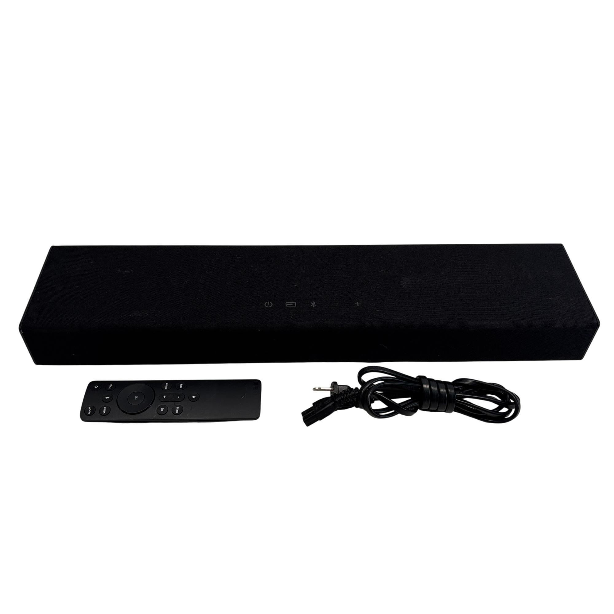 Vizio SB2020NJ6 20" 2.0 Channel Bluetooth Sound Bar delivers clear and immersive audio with wireless Bluetooth connectivity for seamless streaming. Its compact design includes easy-to-use remote control functionality and multiple input ports, making it an ideal audio upgrade for small to medium-sized rooms. Engineered to enhance TV sound, this sound bar provides rich stereo audio performance in a sleek, black rectangular form factor.