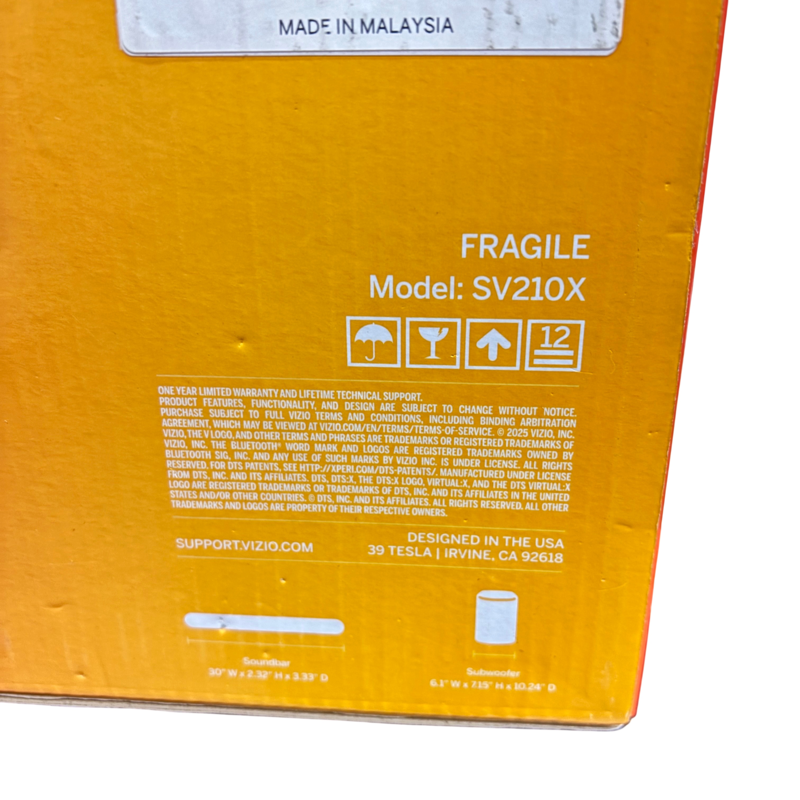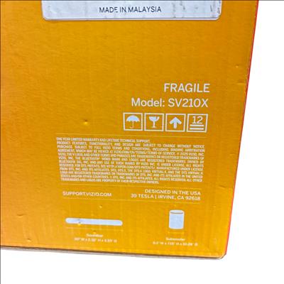 The Vizio 2.1 Soundbar SE (Model SV210X0805) delivers immersive home audio with Dolby Atmos and DTS:X support, enhancing your entertainment experience. This system includes a 30-inch soundbar and a compact wireless subwoofer, providing rich bass and clear sound. Featuring Bluetooth and HDMI connectivity, it offers easy setup and versatile compatibility. Designed with the QuickFit feature, this soundbar fits perfectly in your living space, making it ideal for upgrading your TV audio with powerful, cinema-quality sound.