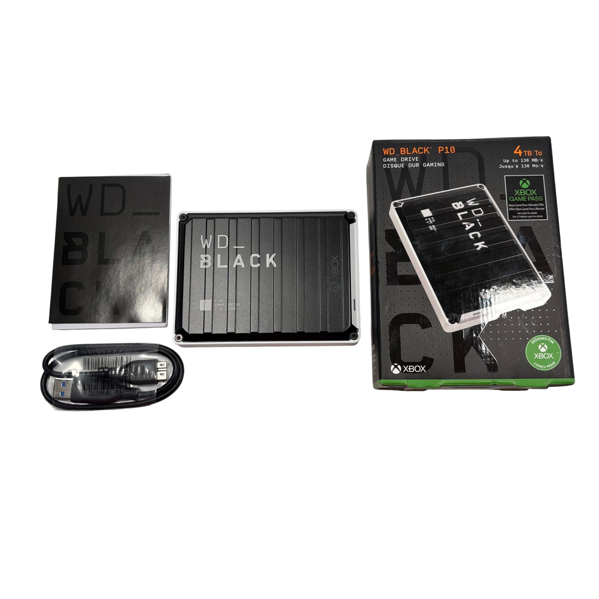 The WD_BLACK P10 4TB Xbox Series X/S/One External Game Drive is a high-capacity external hard drive designed specifically to enhance gaming experiences on Xbox consoles and PC. It features fast USB 3.2 connectivity with data transfer speeds up to 130 MB/s, providing ample storage space for extensive game libraries in a sleek, durable black design optimized for gamers.