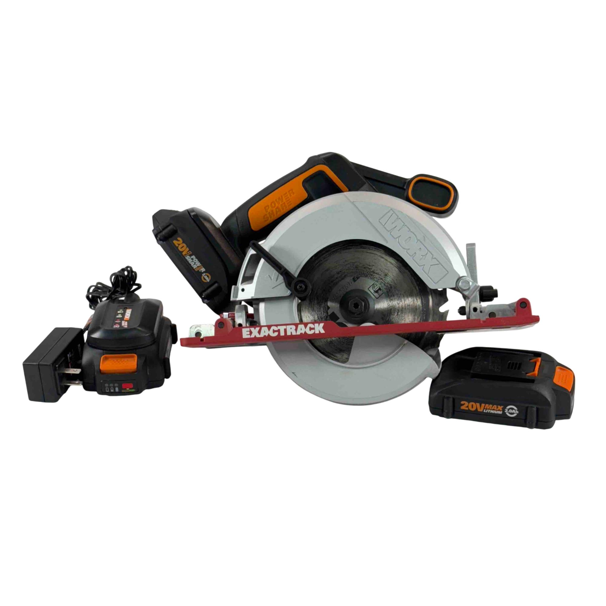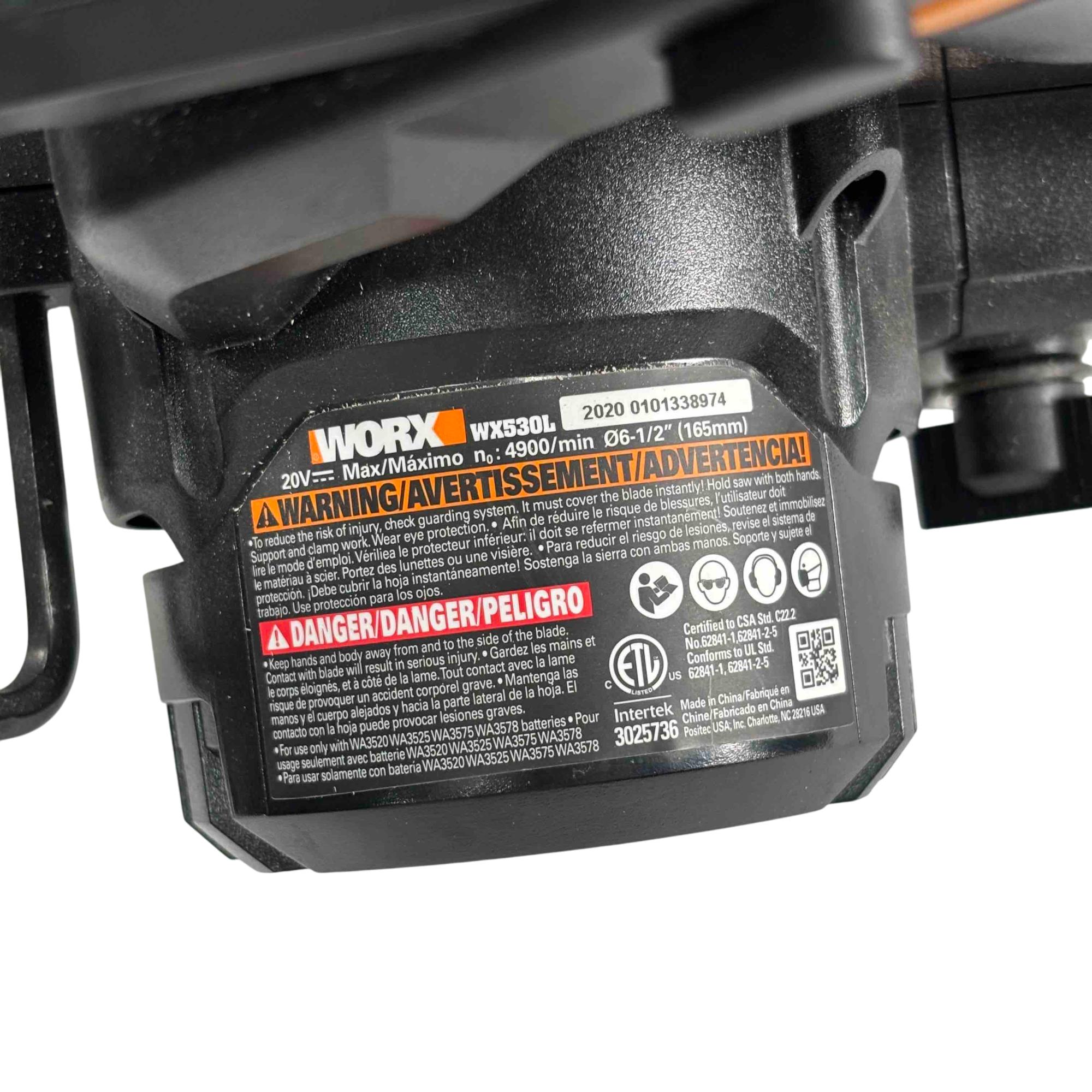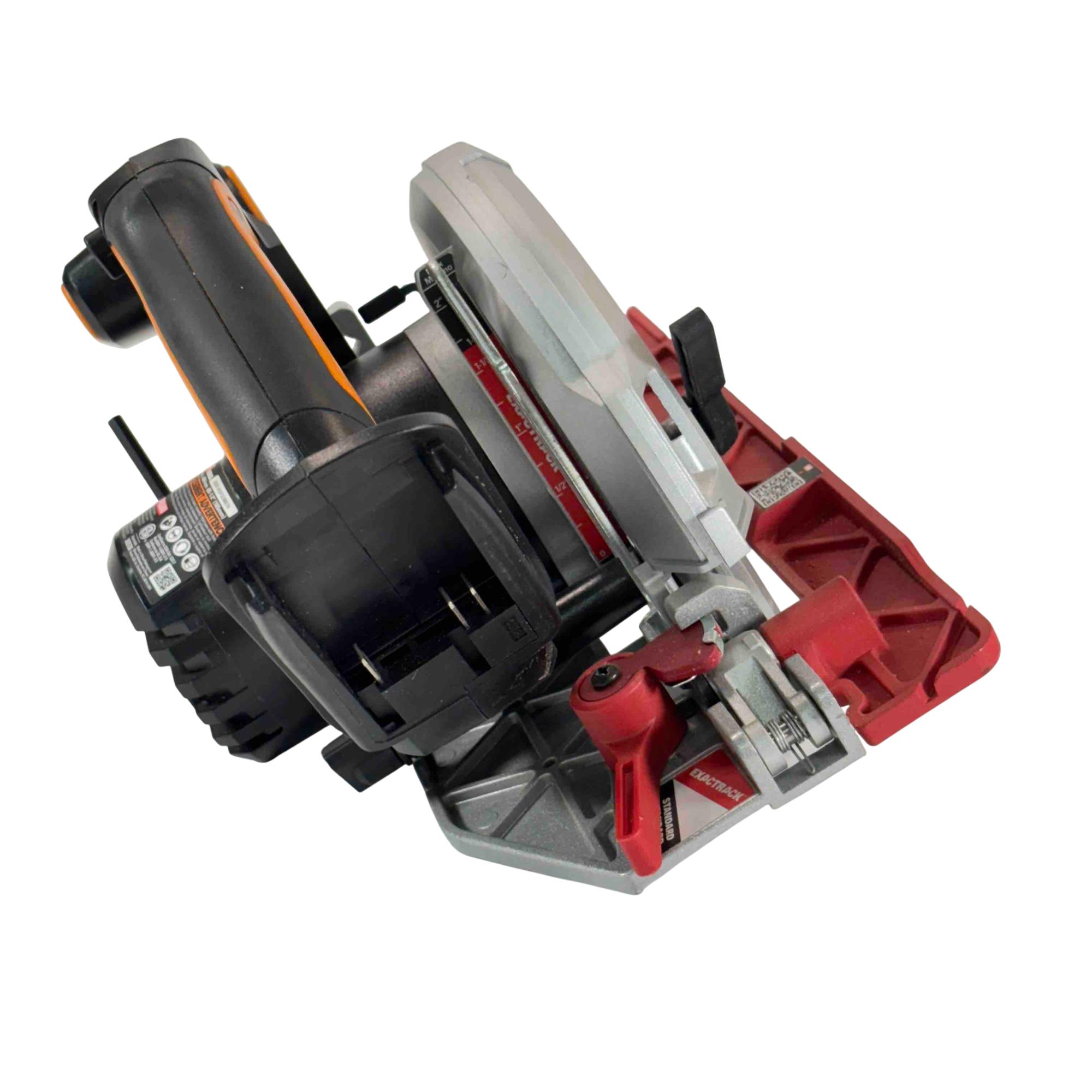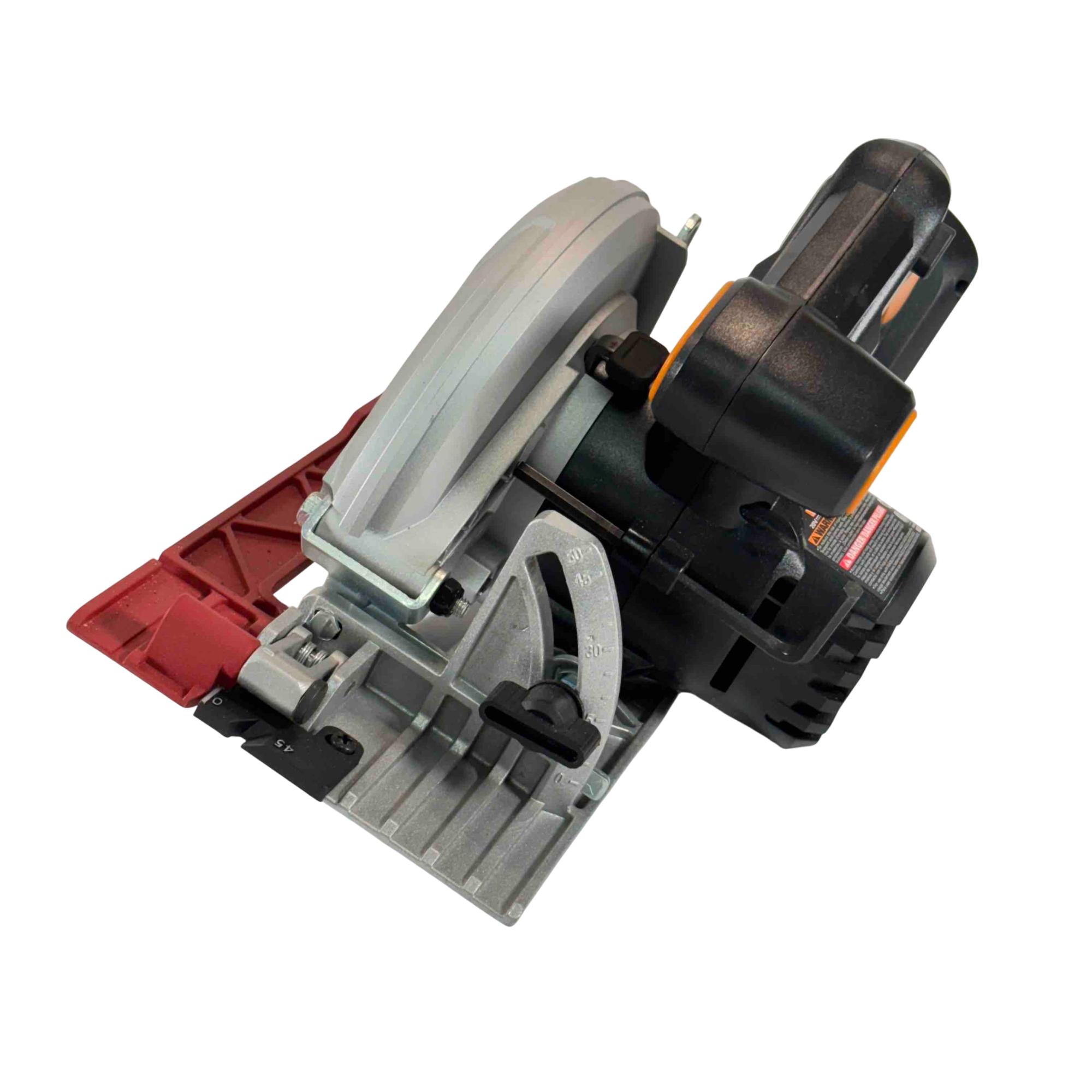 This 20V Max cordless circular saw delivers a no-load speed of 4900 RPM and features a 6-1/2" blade with a 5/8" arbor. It offers a cutting depth of 2-5/32" at 90° and 1-17/32" at 45°, with a bevel capacity range of 0–50° for versatile angled cuts.