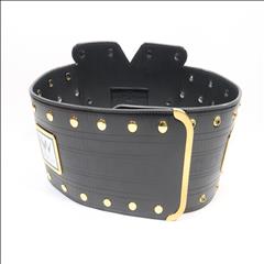 Faux Leather straps Gold electro plating includes coating to prevent scratching and retain color Fits up to a 46 inch waist