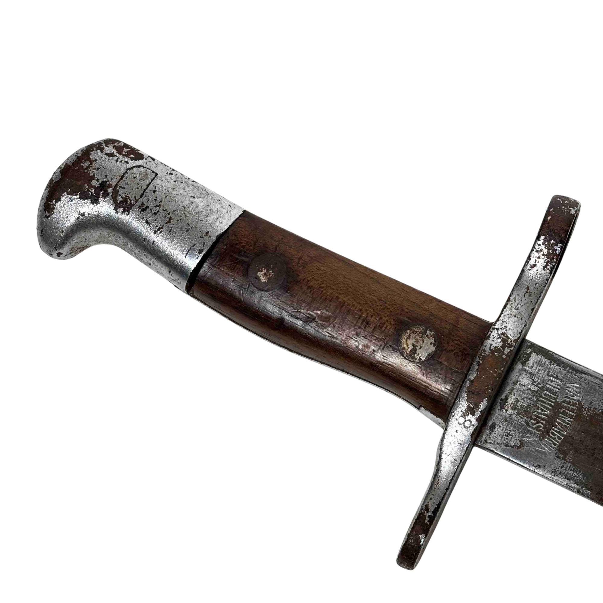 Relive a piece of history with the Waffenfabrik Neuhausen WWI Bayonet with Sheath. This authentic collector’s item features a sturdy metal blade and an elegant wooden handle, capturing the timeless craftsmanship of the era. Perfect for enthusiasts of military memorabilia, this bayonet adds a unique touch to any collection.