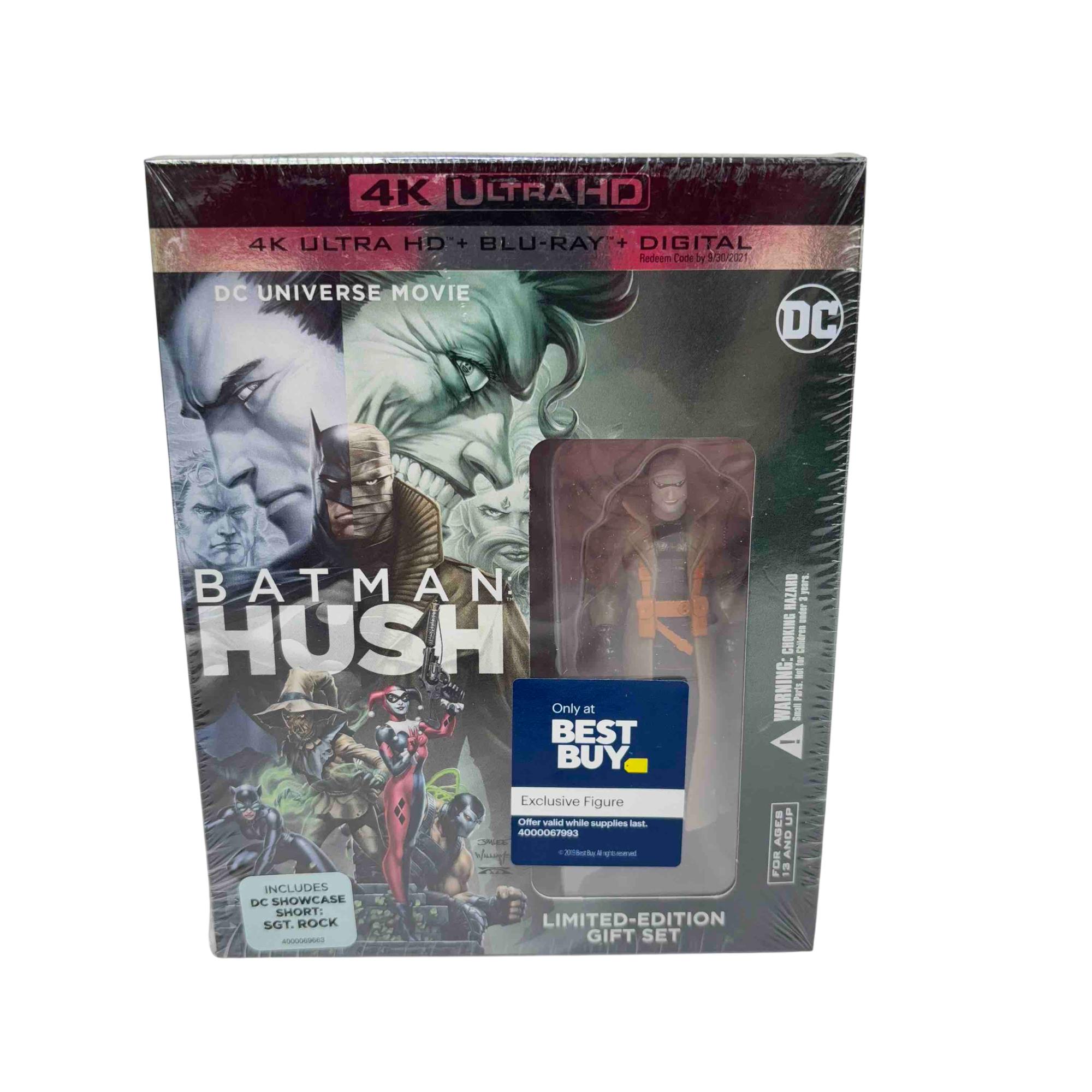 Dive into the thrilling world of DC with the Batman: Hush Limited-Edition Gift Set. This exclusive package includes a 4K Ultra HD, Blu-ray, and Digital version of the iconic DC Universe Movie, along with a collectible Batman figure, available only at Best Buy. Experience the mystery and action as Batman unravels a deadly game set by the enigmatic villain, Hush.