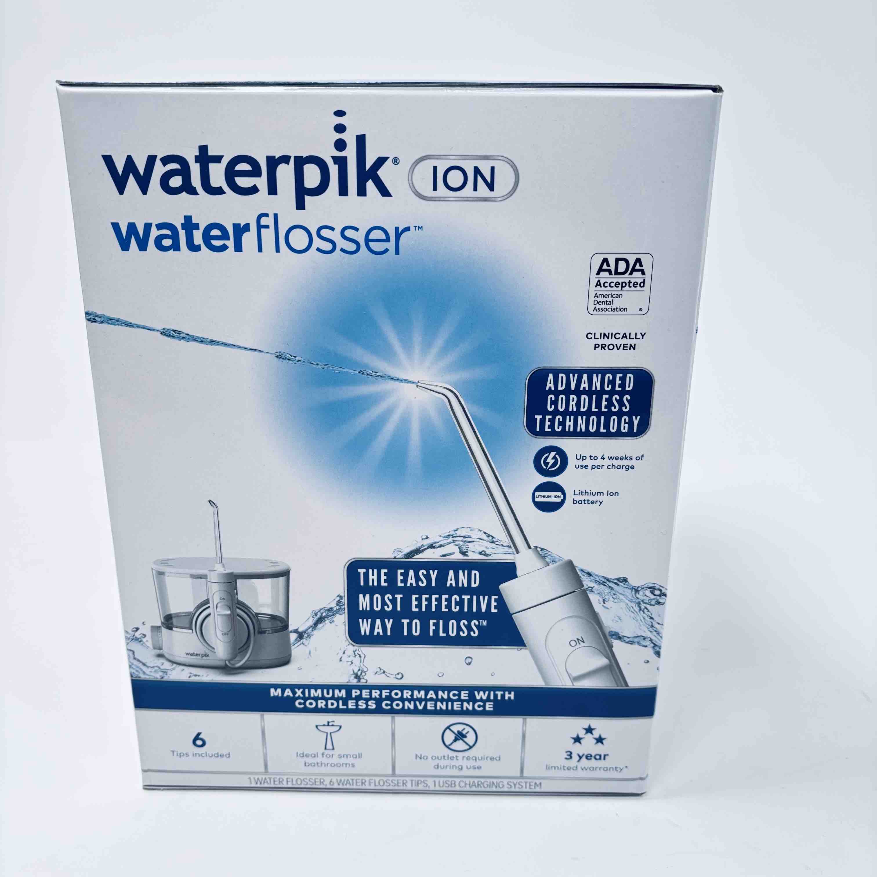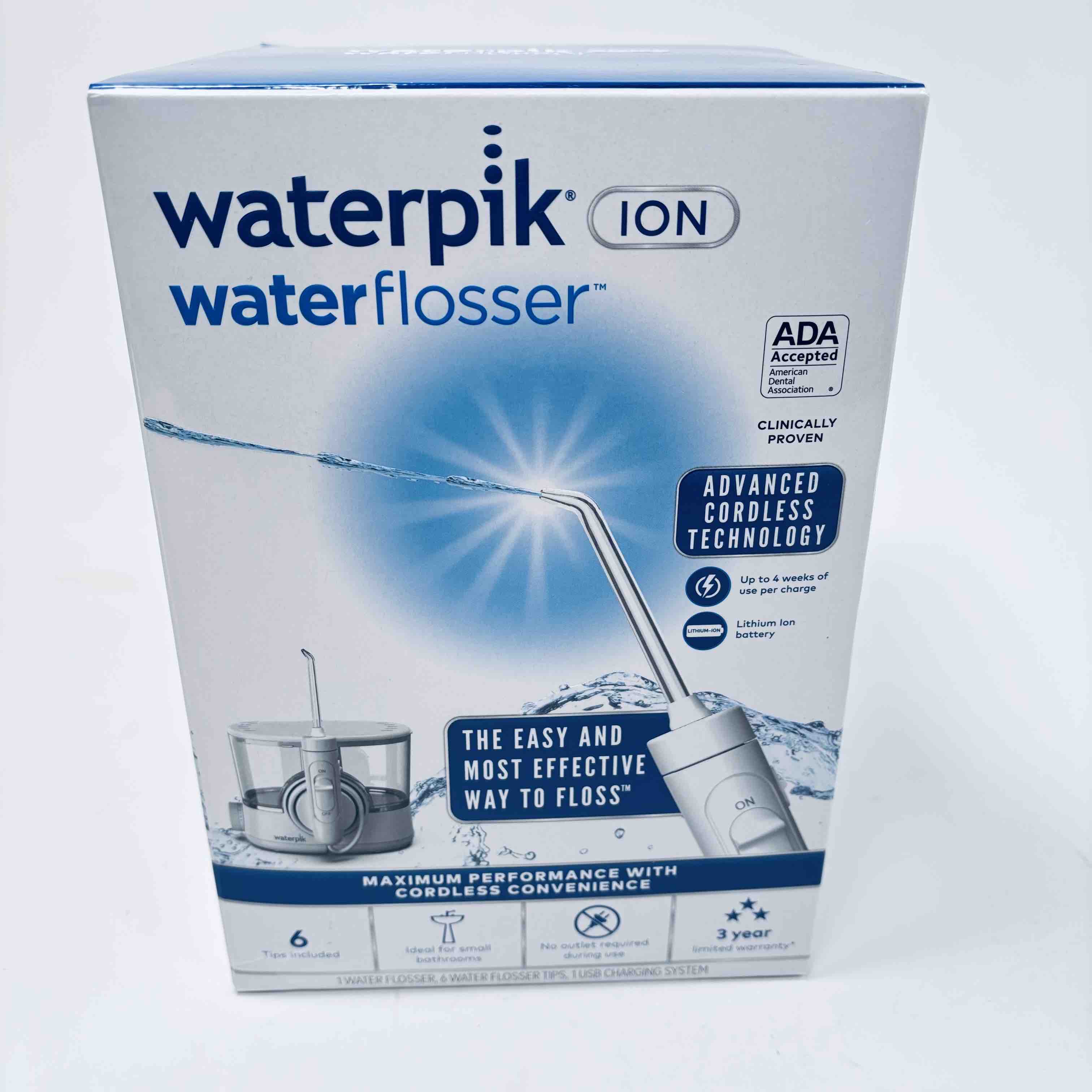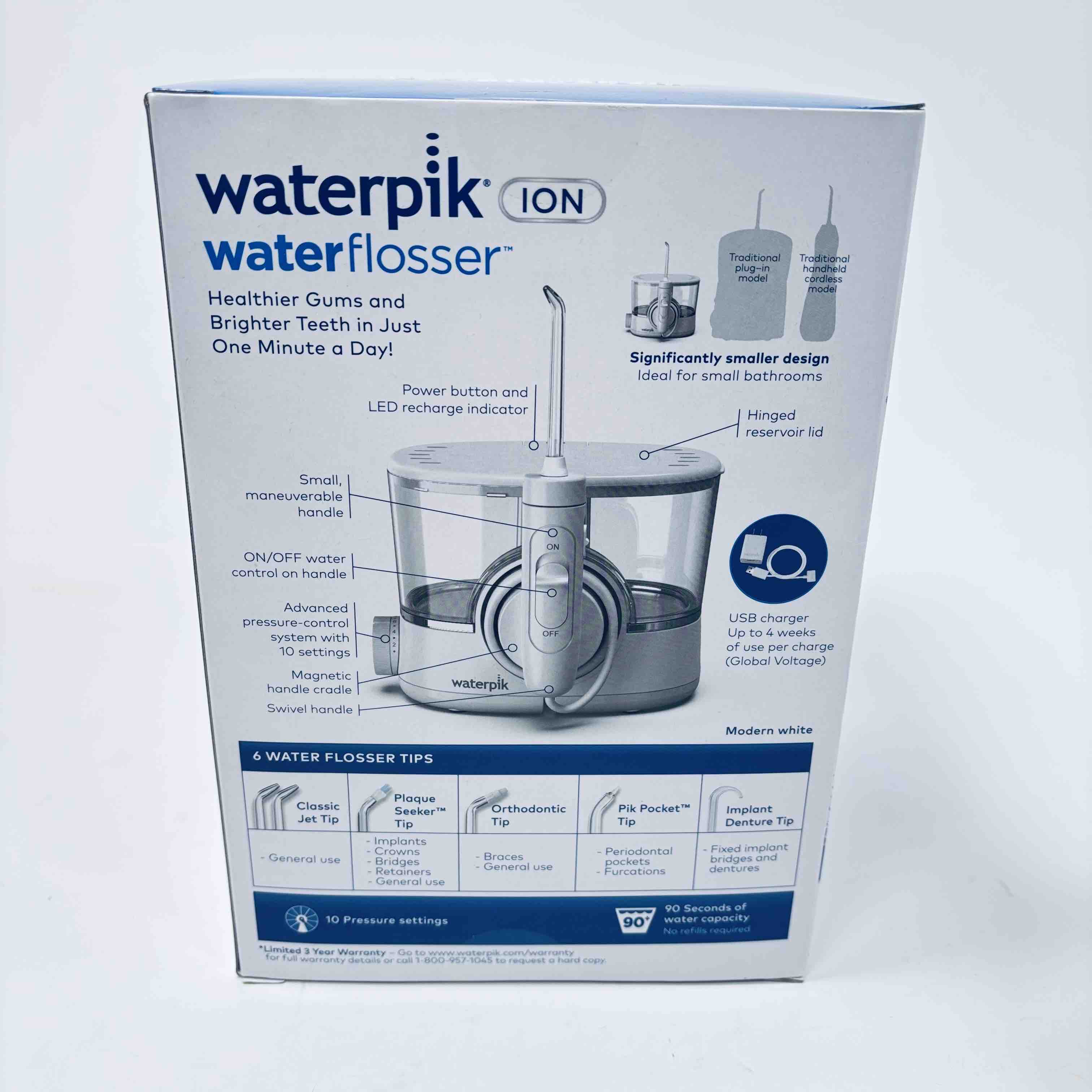 Boost your oral health at home with Waterpik ION Water Flosser. ION is a countertop model that provides maximum performance with cordless convenience. There is no outlet required during use and the battery lasts up to 4 weeks per charge. ION delivers full-size water flosser performance in a compact design making it ideal for small bathrooms. Featuring On/Off water control on handle with a magnetic handle cradle. This model comes with 6 flossing tips and 10 pressure settings.