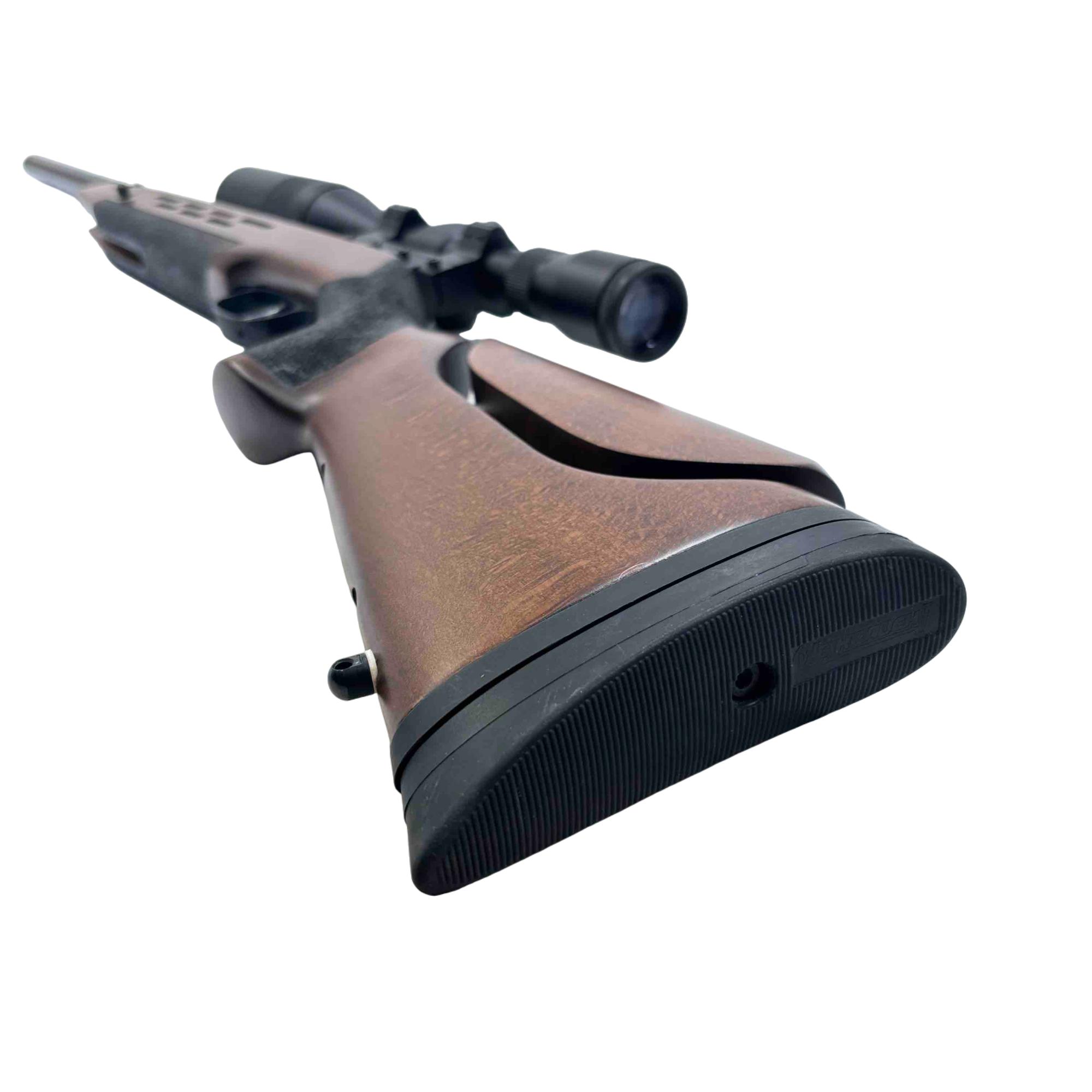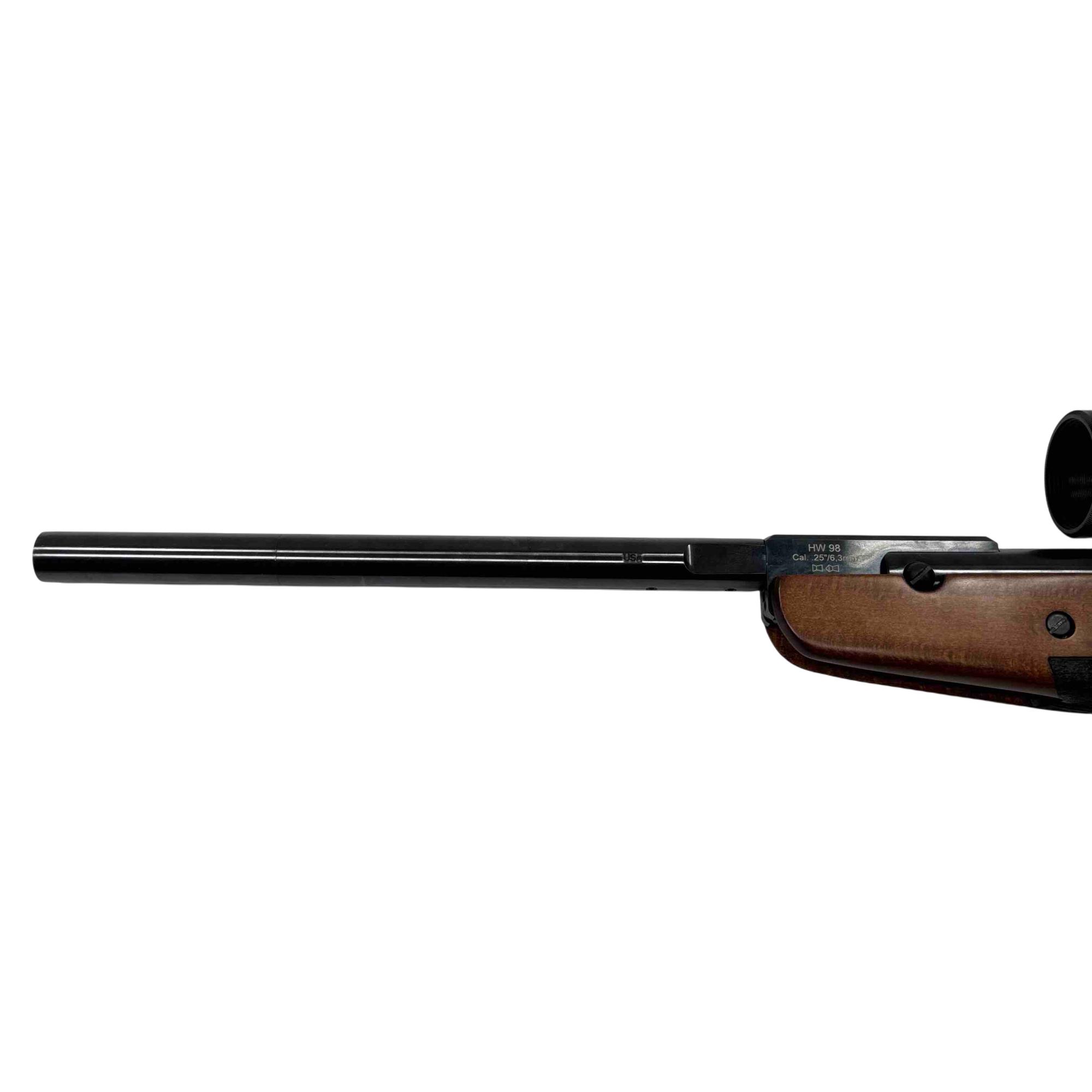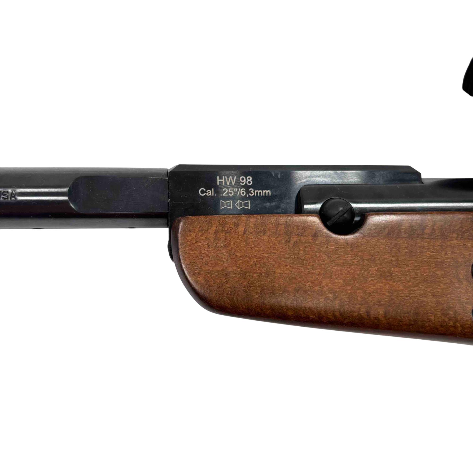 Experience precision and power with the Weihrauch HW98 Air Rifle, featuring a sleek wood stock and equipped with a Hammers Scope for ultimate accuracy. Ideal for shooting enthusiasts, this .25 caliber rifle combines style with exceptional performance, making it a sought-after choice for both hunting and target practice.