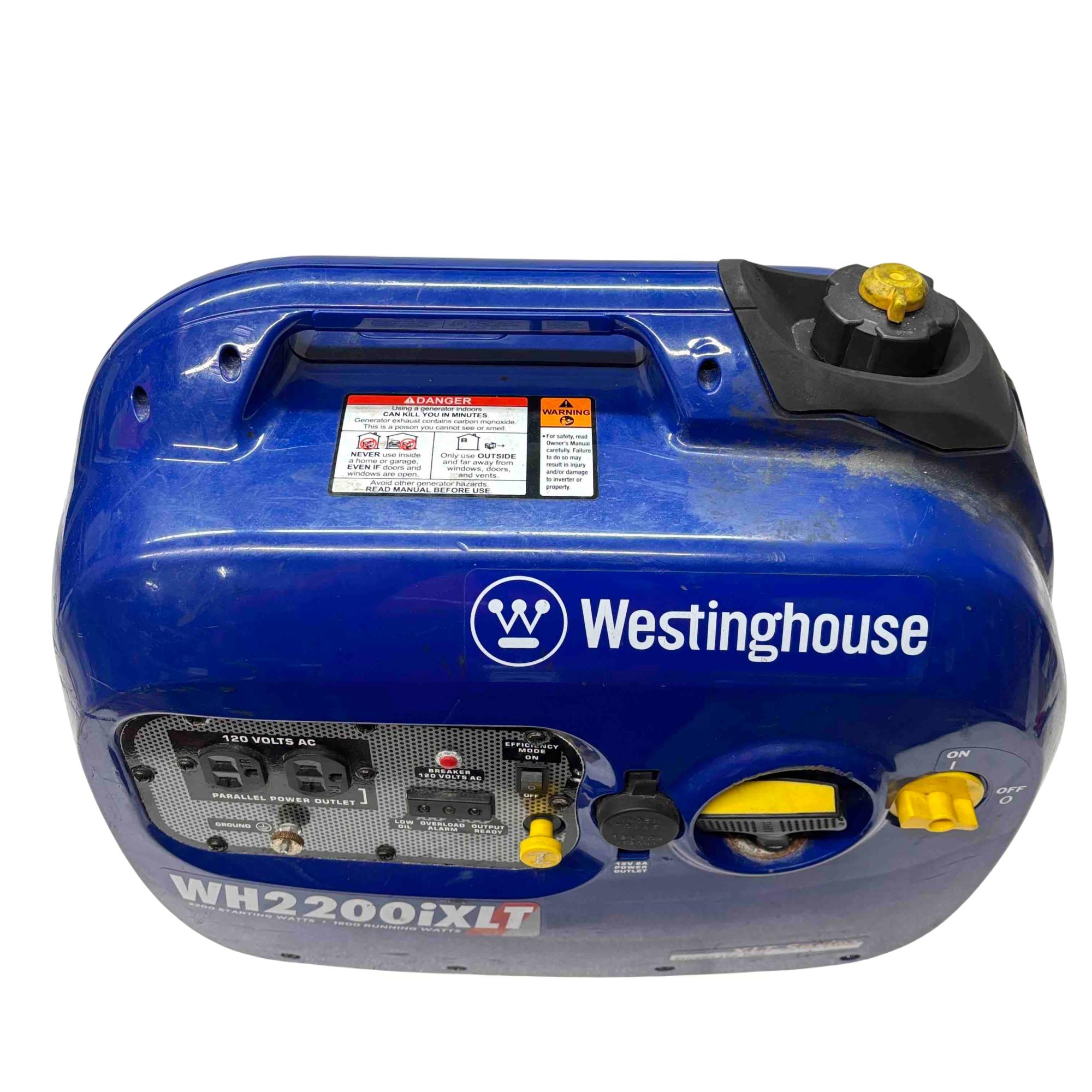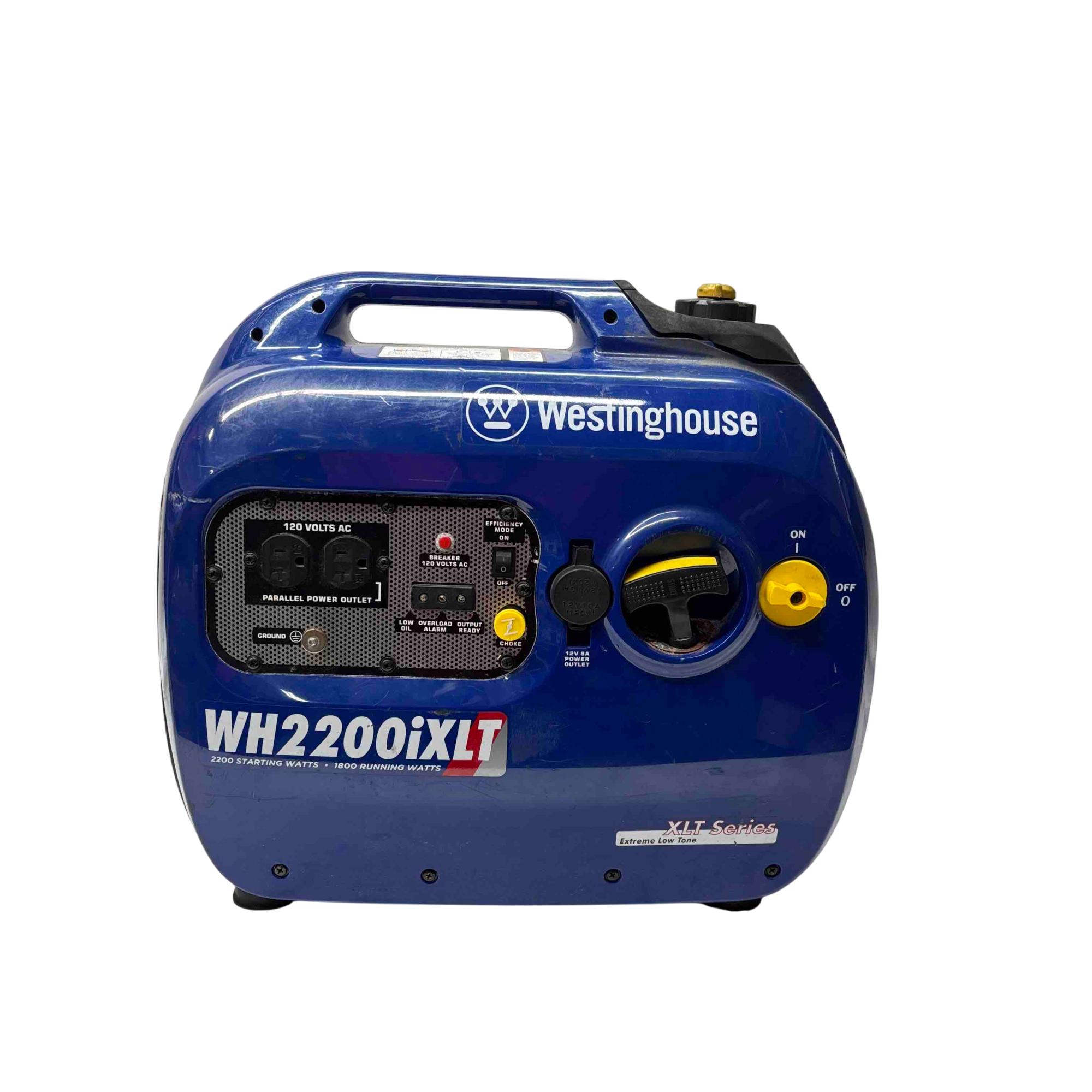 2,200 peak watts and 1,800 running watts, generating power from two 120-Volt household outlets and one 12-Volt DC power outlet. Weighing only 43 lb.