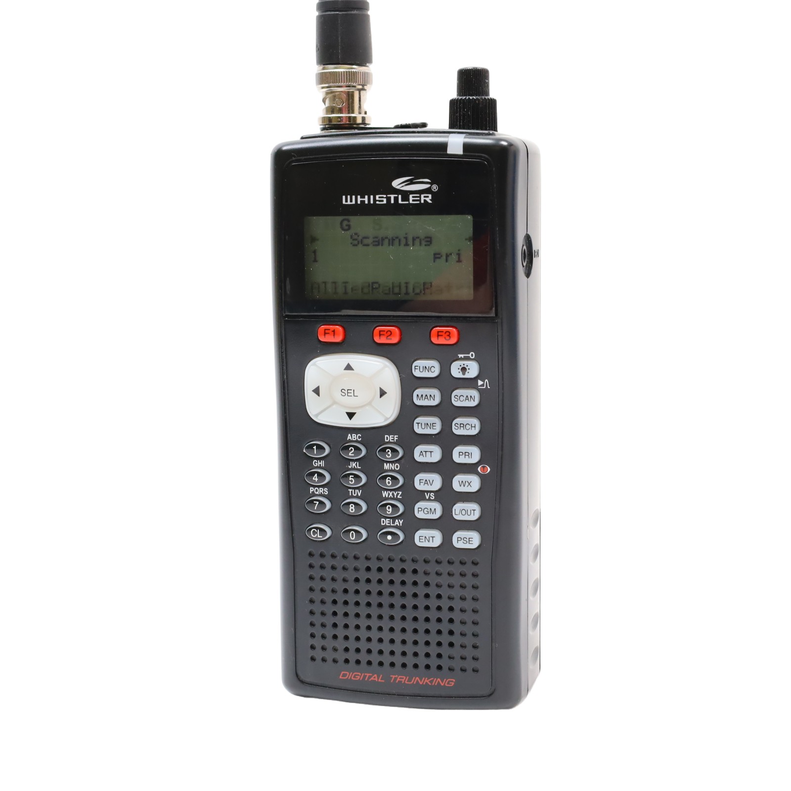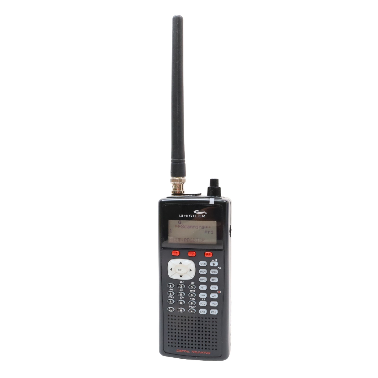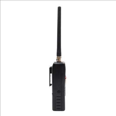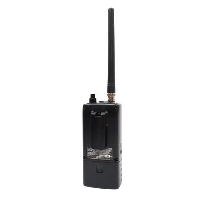 A digital trunking handheld radio scanner designed for monitoring public safety and aviation communications. This unit stores up to 1,800 frequencies and supports Motorola P25 Phase I capabilities. The device features Object Oriented programming with a Virtual Scanner mode that accommodates up to 21 configurations containing over 38,000 scannable objects. Frequency coverage includes 25-50MHz VHF-Lo, 50-54MHz 6-meter Ham, 108-136.99166MHz VHF aircraft, 137-144MHz VHF government, 144-148MHz 2-meter Ham, 148-174MHz VHF-Hi, 225-379.975MHz military aircraft, 380-400MHz military aircraft, 400-512MHz UHF-Lo, 500-512MHz UHF-Lo, 764-781.996875MHz UHF-Hi, 791-796.996875MHz UHF-Hi, 806-960MHz UHF-Hi, and 1240-1300MHz UHF-Hi, excluding cellular bands 824-848.9875MHz and 869-893.9875MHz. Additional features include a dedicated Skywarn button for storm spotter frequencies, a Spectrum Sweeper function, and Digital AGC for audio level adjustment. The system utilizes menu-driven programming with context-sensitive help and allows for lock-out functionality to exclude specific frequencies while scanning.