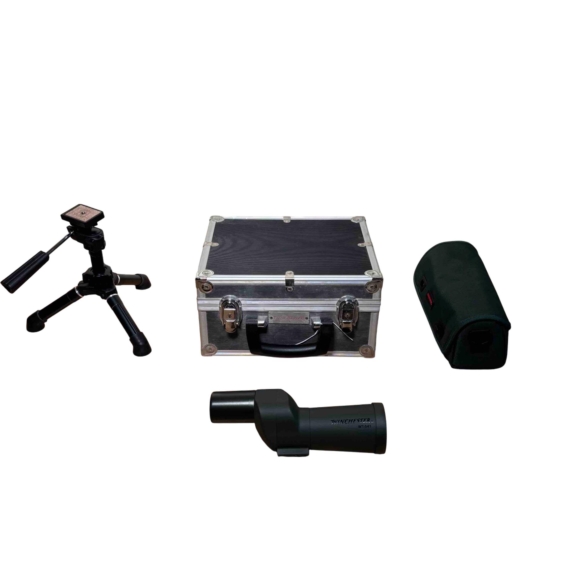 Experience precision and clarity in every outdoor adventure with the Winchester WT-541 15-45x60mm Spotting Scope Kit. This premium kit features a powerful spotting scope with versatile zoom, a durable metal carrying case, a protective soft cover, and a sturdy tabletop tripod—perfect for shooting, birdwatching, or outdoor observation. Enjoy exceptional performance and legendary Winchester reliability in one portable package.