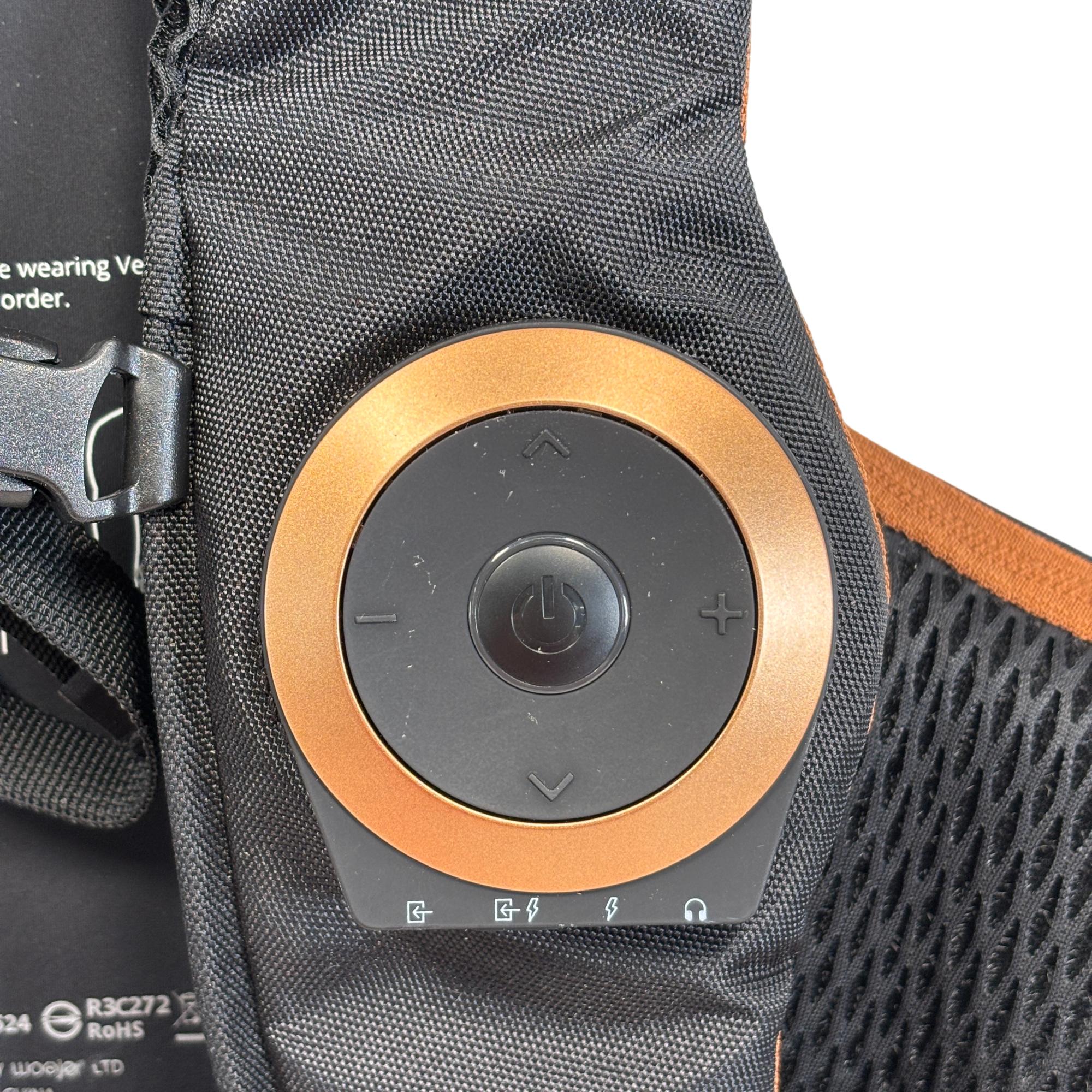 The Woojer Vest Edge WJRVE101 Haptic Gaming/Music Vest delivers immersive audio experiences through advanced haptic feedback technology that synchronizes with sound for a deeper sensory interaction. Designed and engineered to enhance gaming, music, and virtual reality, this wearable device features an adjustable harness with integrated wires and a compact control box for precise vibration output.