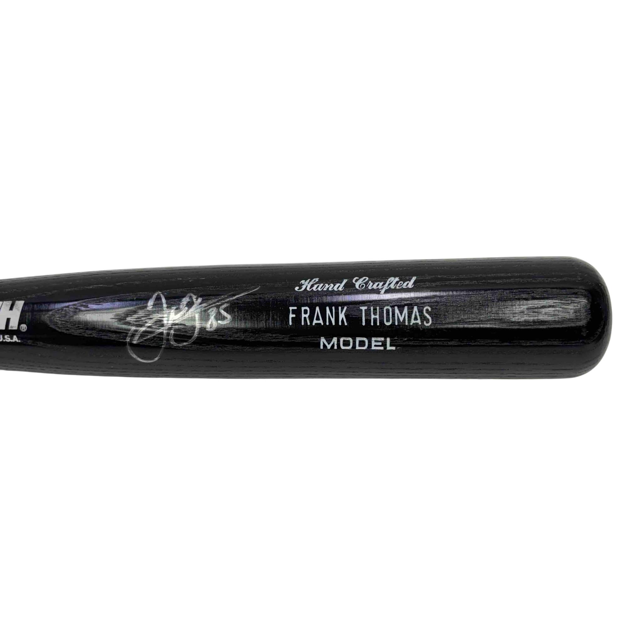 This is a premium Worth brand hand crafted Frank Thomas Model black wooden baseball bat, signed by the legendary player Frank Thomas. Perfect for collectors and fans alike, this authentic sports memorabilia piece is a standout, featuring quality construction and a clear autograph. Elevate your collection with this iconic bat, made in Tullahoma, TN, USA.