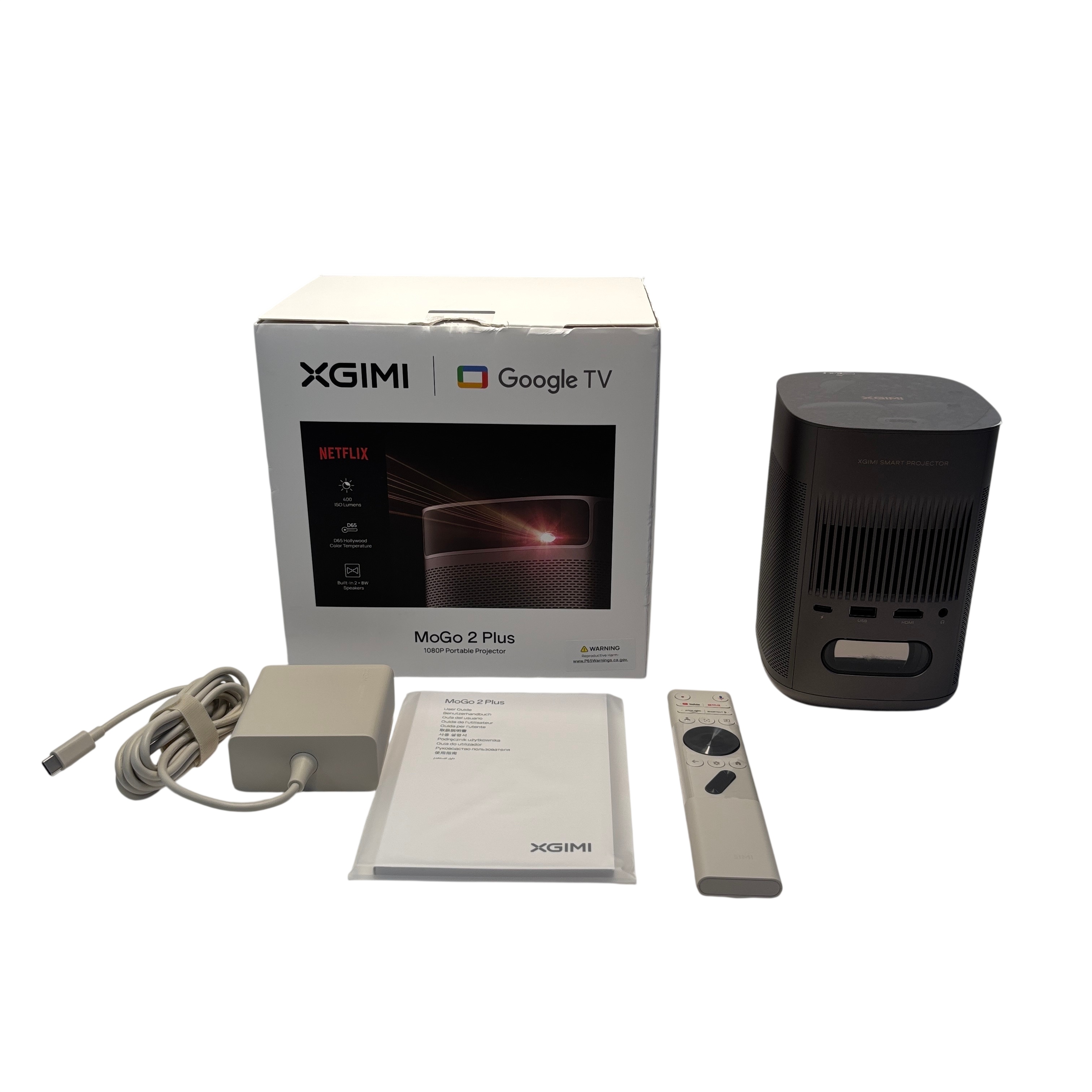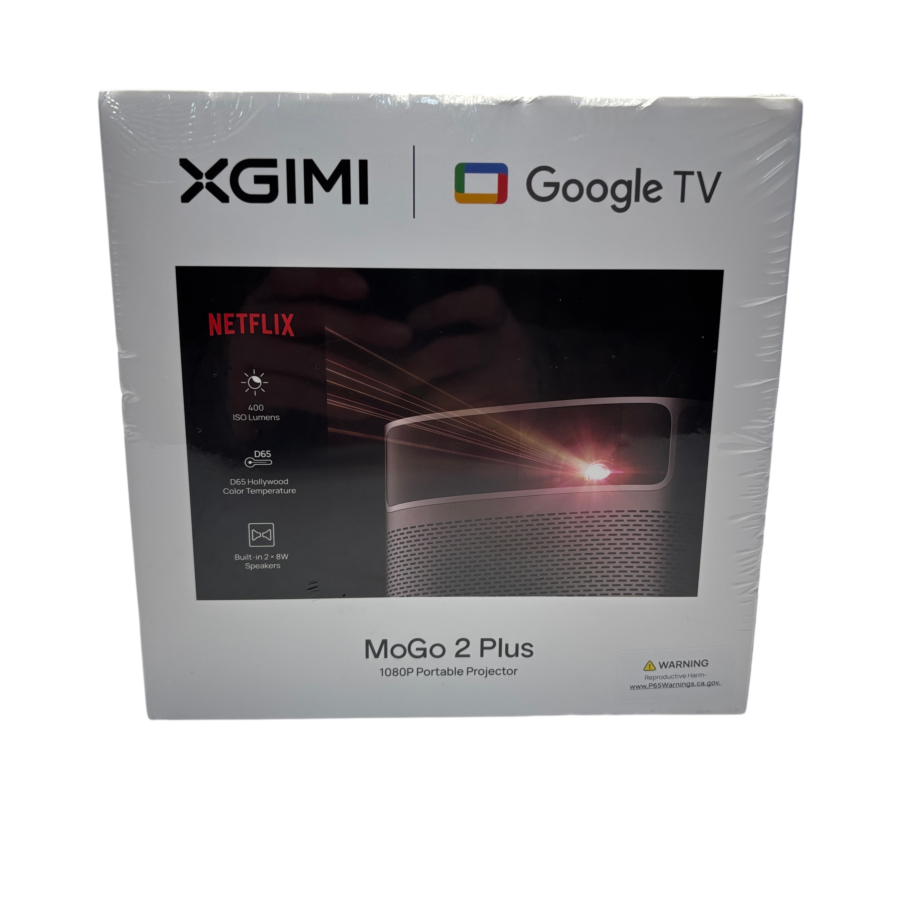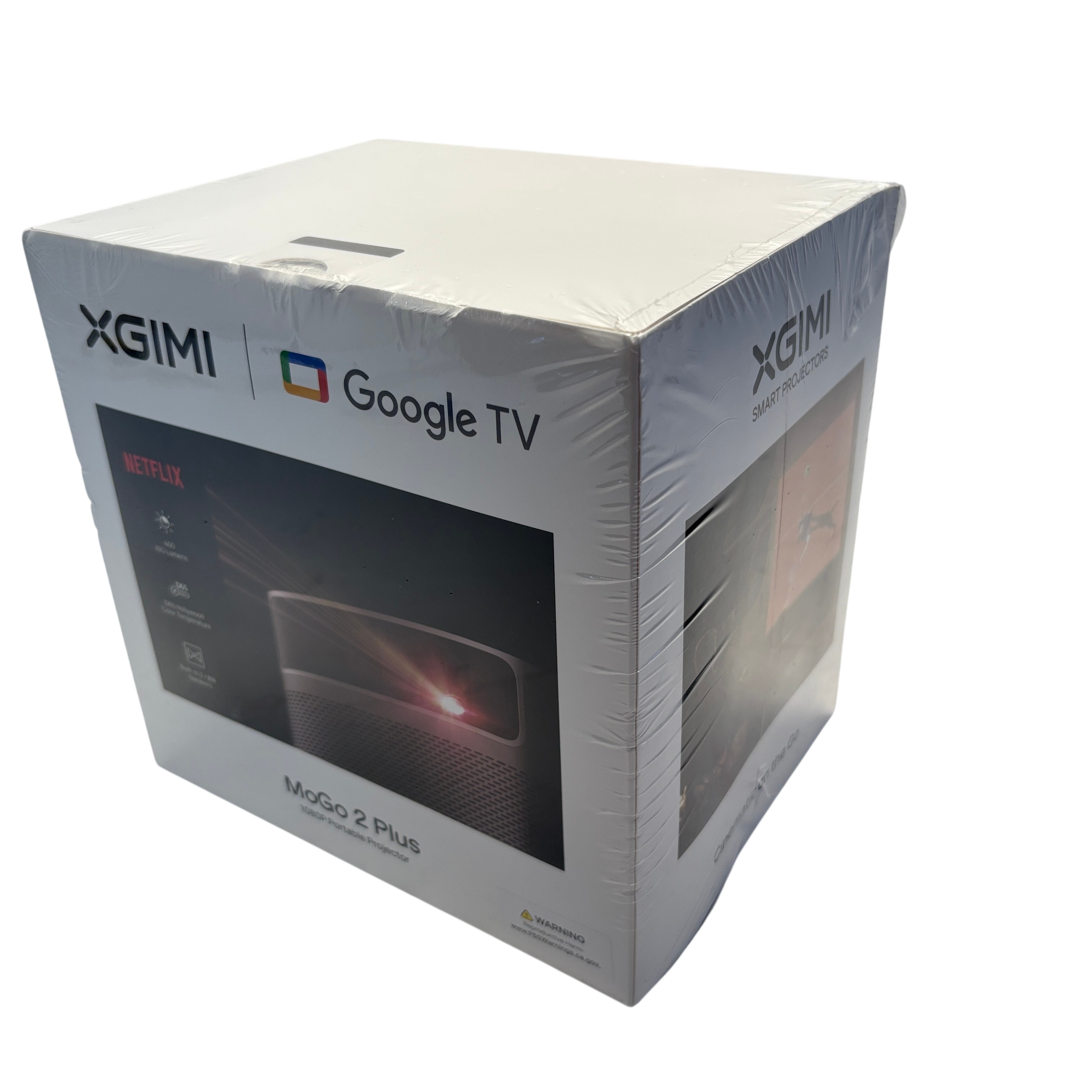 The XGIMI MoGo 2 Plus 1080P Portable Projector delivers crisp Full HD 1080P resolution with 400 ISO lumens brightness and D65 Hollywood color temperature for vibrant and accurate image quality. Featuring built-in dual 8W speakers enhanced with Dolby Audio, this compact projector offers an immersive audiovisual experience. Powered by Google TV, it provides seamless access to streaming apps and smart features. Its lightweight and portable design make it ideal for home entertainment, travel, or presentations.