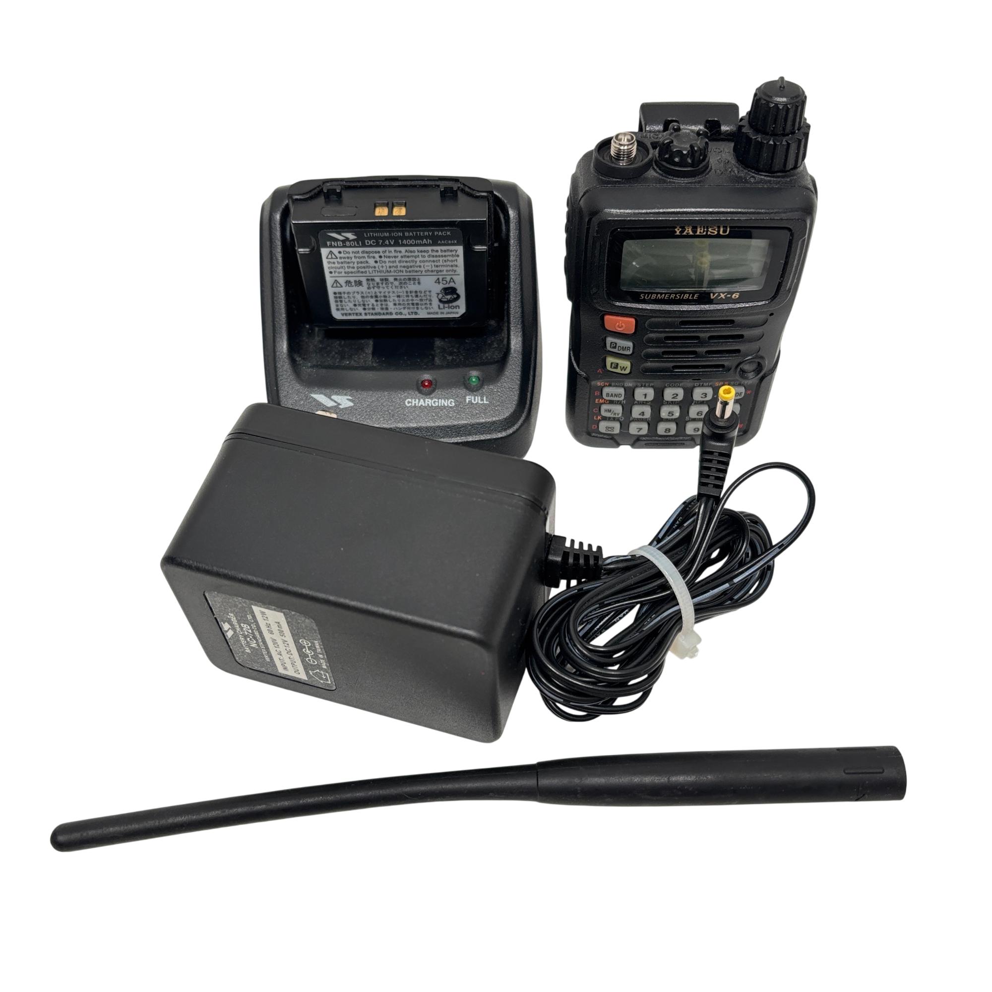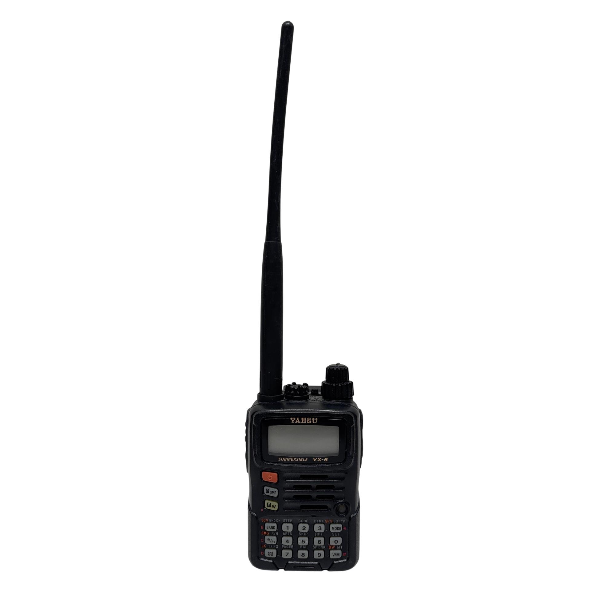 Yaesu VX-6R Submersible Tri-Band Handheld Transceiver Radio is a rugged and waterproof handheld radio designed for reliable communication across VHF and UHF bands. Featuring a clear screen, long antenna, and durable construction, this tri-band transceiver offers versatile performance for ham radio enthusiasts and emergency communication needs.