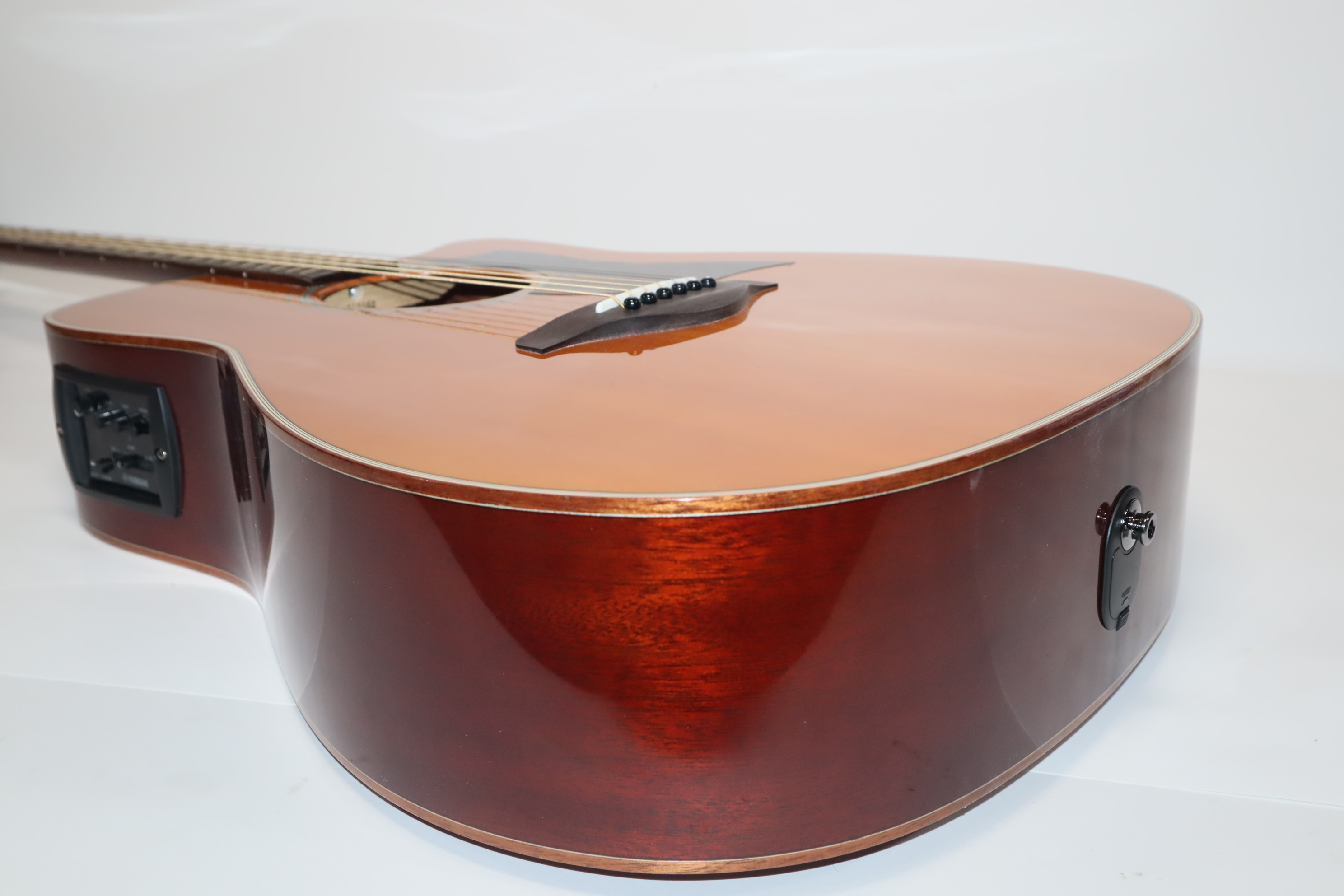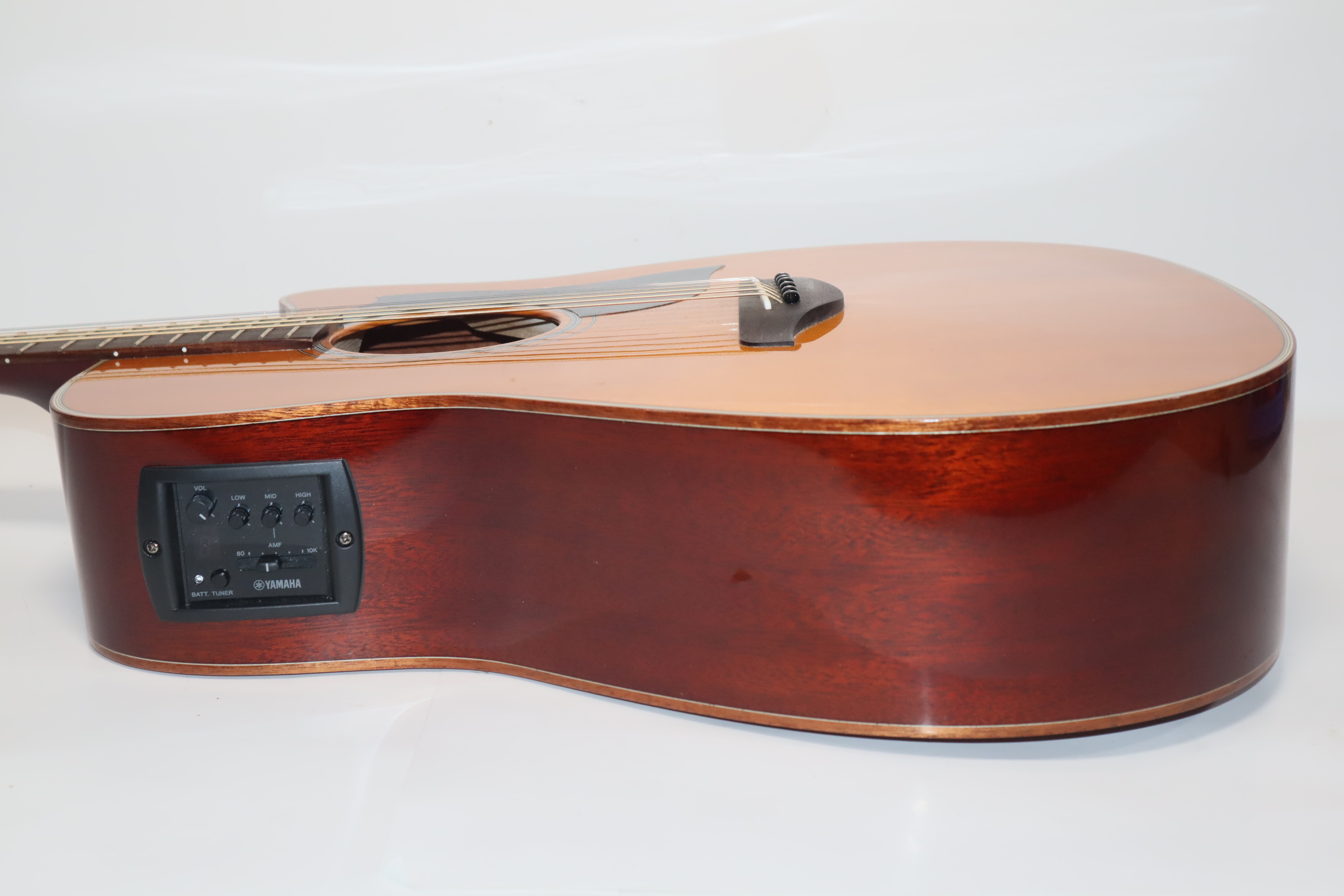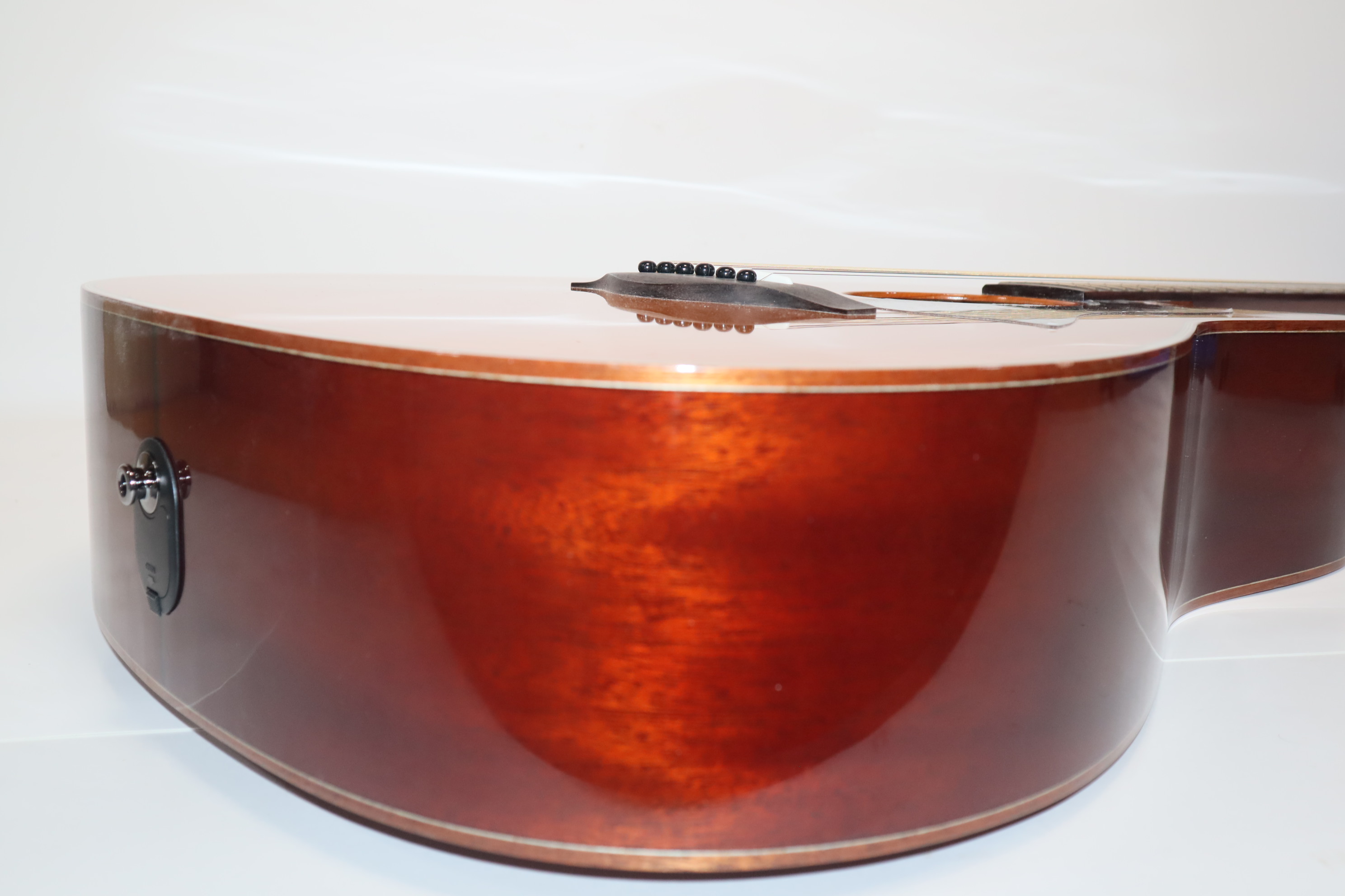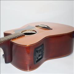 In the Yamaha A1M Dreadnought acoustic-electric guitar, Yamaha offers a vintage look, excellent volume in the low-mid ranges, and great playability. With a solid Sitka spruce top and mahogany back and sides, this guitar sounds fantastic. The Yamaha A1M Dreadnought takes full advantage of Yamaha's acclaimed SRT pickup for recording and stage performance. With its traditional System 66 preamp, you get volume, a built-in tuner, a 3-band EQ, and automatic midrange frequency control with a convenient slider.