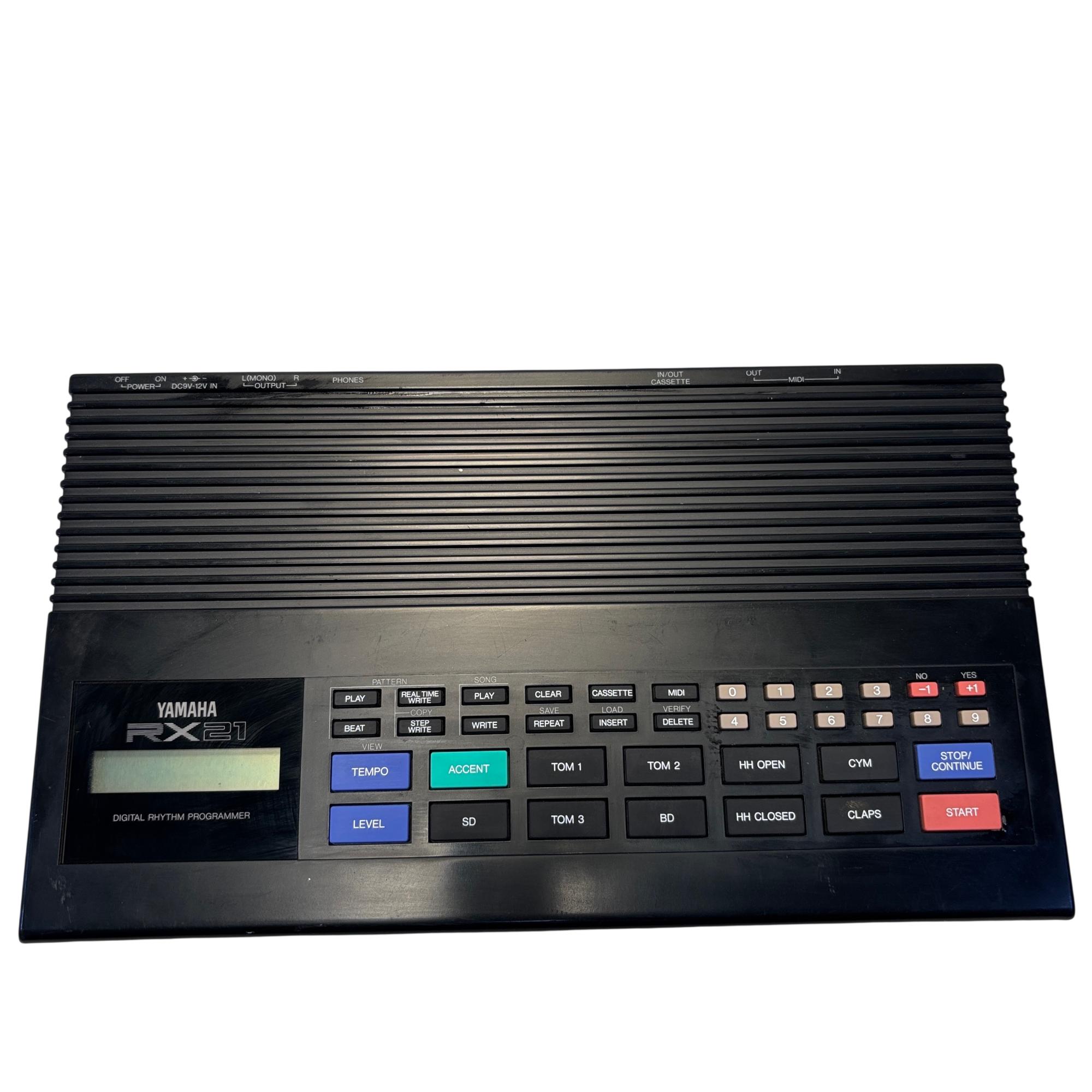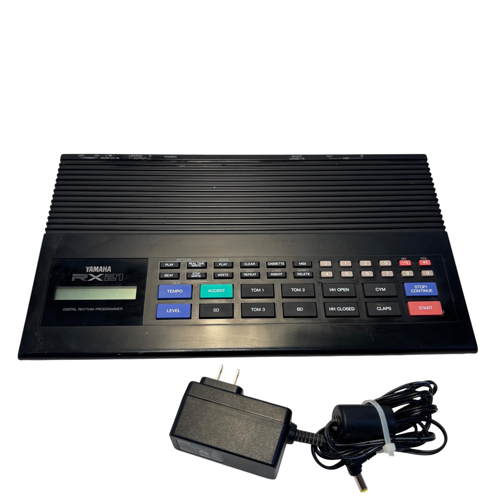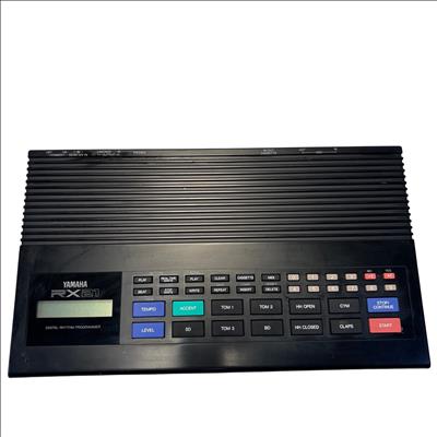 The Yamaha RX21 Digital Rhythm Programmer Drum Machine is a versatile electronic device designed for precise rhythm programming and beat creation. Featuring multiple control buttons and MIDI connectivity, this drum machine offers detailed tempo and pattern adjustments, making it ideal for musicians and producers seeking classic digital percussion sounds.