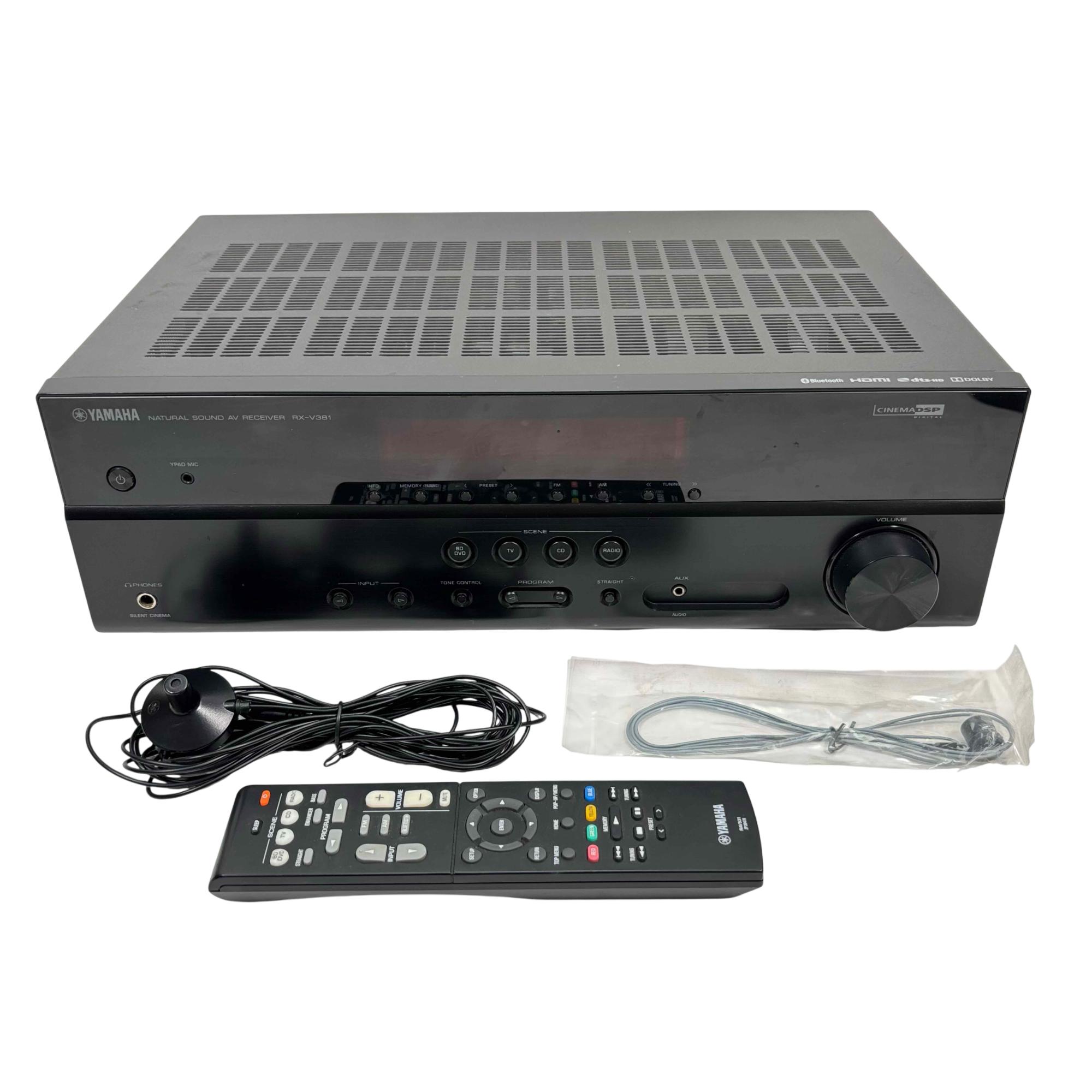 Yamaha RX-V381 5.1-Channel A/V Receiver delivers immersive home theater audio with support for 5.1 channel surround sound and advanced HDMI connectivity. It features Bluetooth streaming, Dolby Digital decoding, and Yamahas Cinema DSP technology to enhance audio clarity and depth. This receiver offers precise tuning options and versatile input controls, making it an ideal centerpiece for high-quality home entertainment setups.