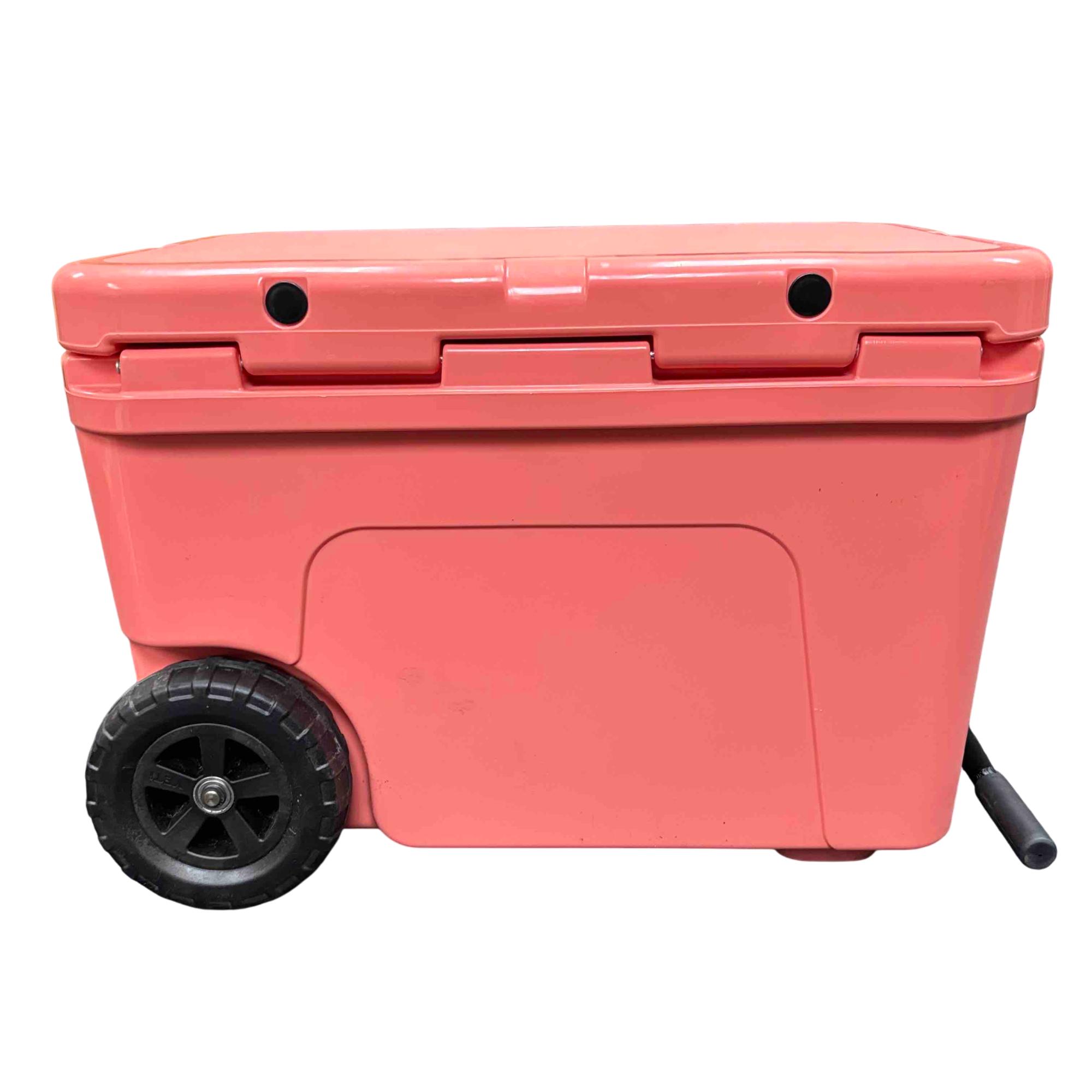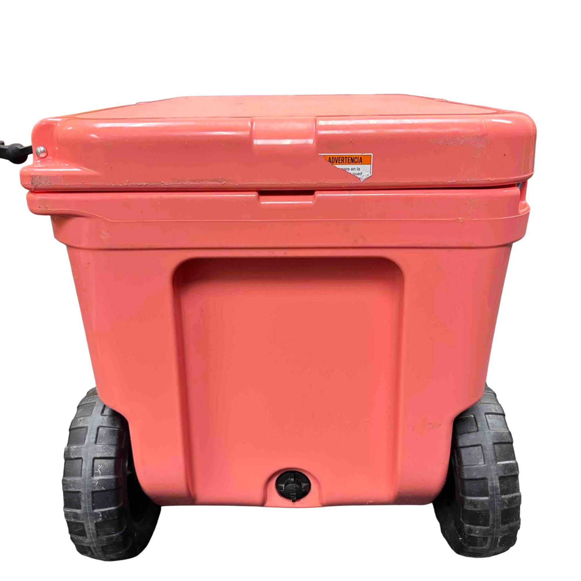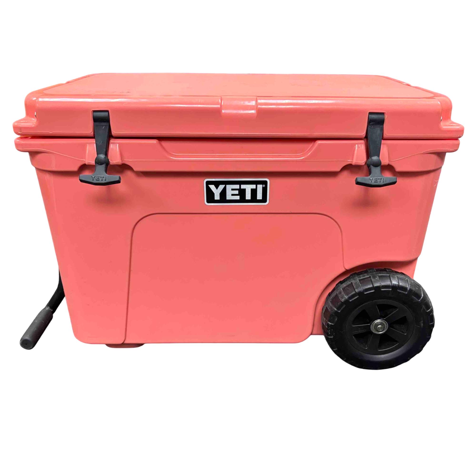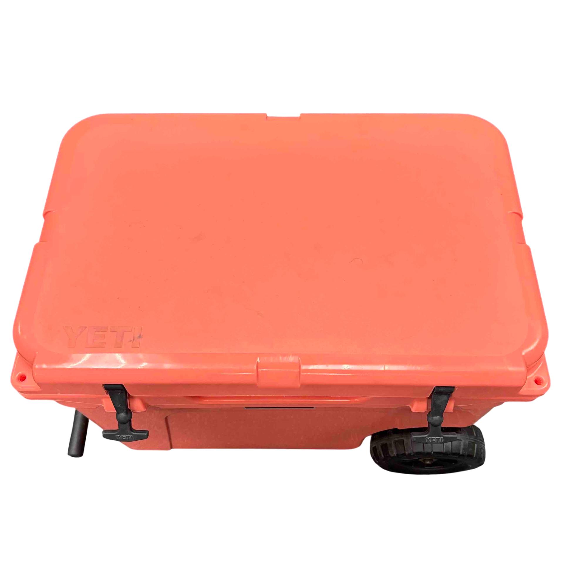 Introducing the Yeti Tundra Haul Wheeled Cooler in vibrant Coral Pink – your ultimate companion for any adventure. This rugged, high-capacity cooler is designed for ease of transport with its durable wheels and ergonomic handle, keeping your items cool for days on end while effortlessly maneuvering through various terrains.