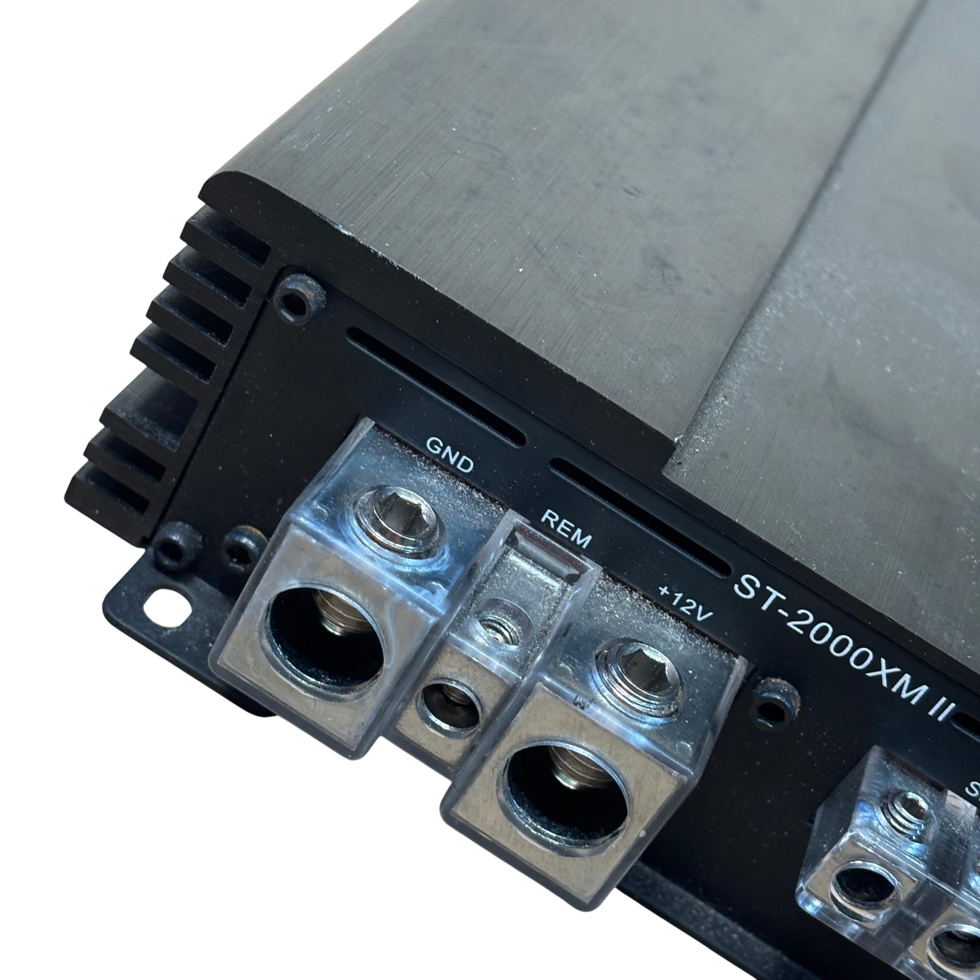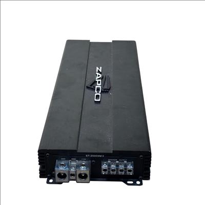 Zapco ST-2000XM II 2000 Watt Monoblock Car Audio Amplifier delivers powerful and precise audio performance designed for car audio systems. Featuring a sleek black rectangular design with durable metal corners and silver text, this high-performance amplifier provides robust amplification capable of driving demanding loads with clarity and low distortion.