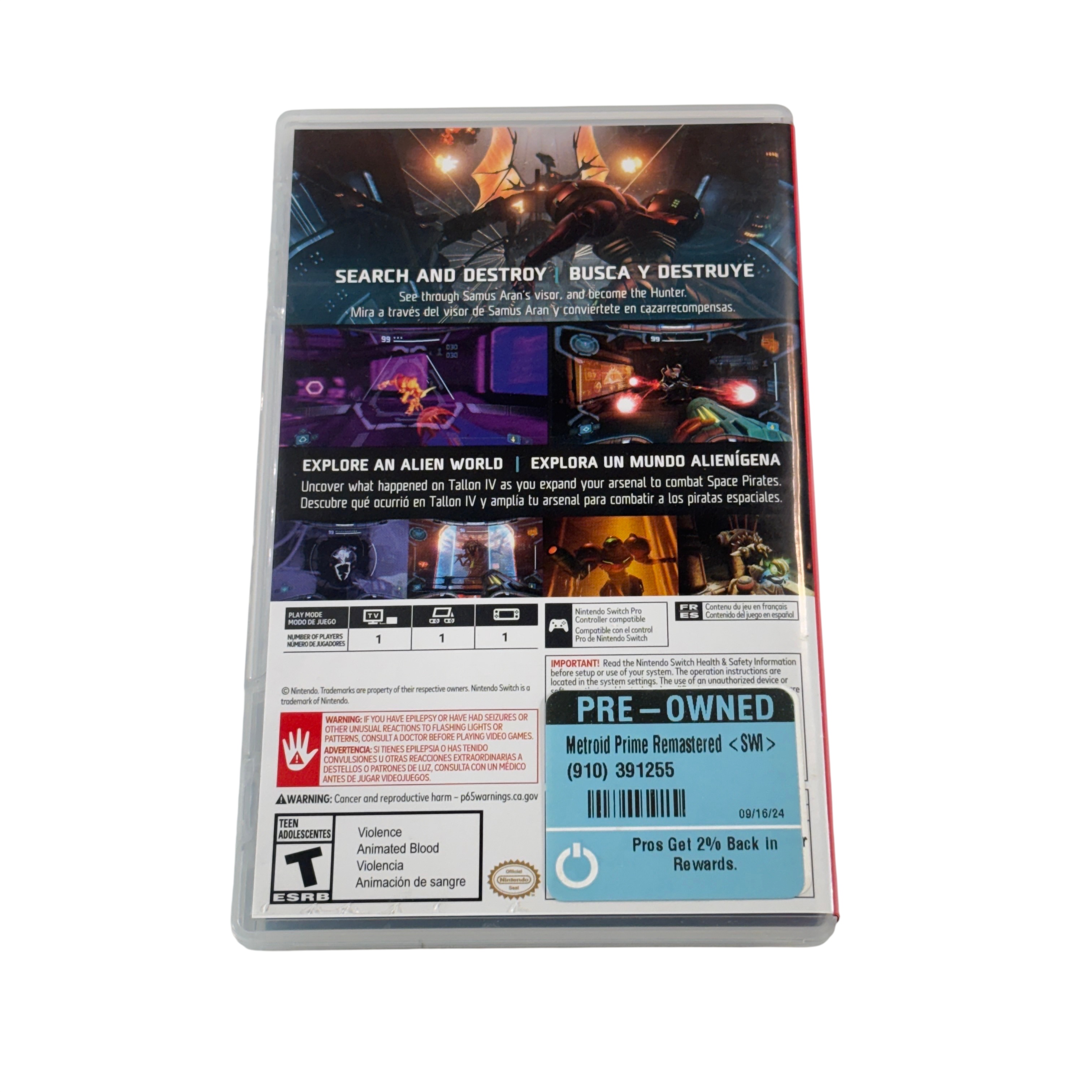 Metroid Prime Remastered for Nintendo Switch is a critically acclaimed first-person adventure that follows bounty hunter Samus Aran as she explores the hostile world of Tallon IV. Players utilize and upgrade a range of abilities, including the Morph Ball, missiles, and beam weapons, to overcome environmental hazards and formidable enemies. The interconnected world encourages exploration and backtracking to uncover hidden paths and secrets, while a scanning system reveals lore and enemy weaknesses. Featuring enhanced visuals, improved audio, and flexible control options, this remastered classic delivers a refined and immersive sci-fi experience.