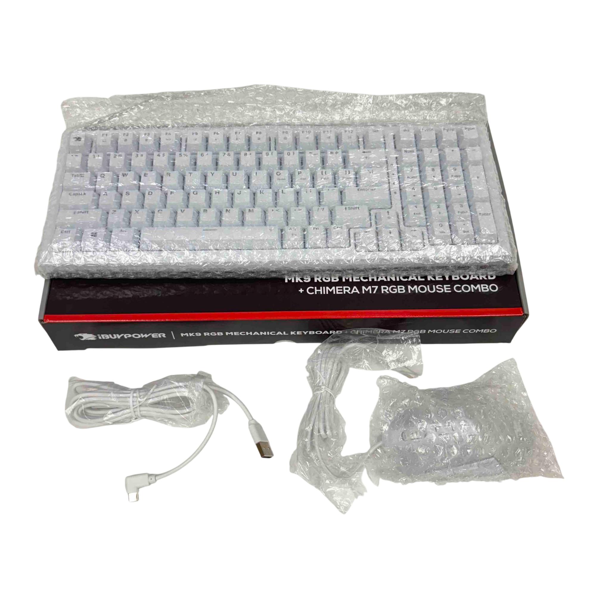 Upgrade your gaming or office setup with the iBUYPOWER MK9 RGB Mechanical Keyboard and Chimera M7 RGB Mouse Combo. Featuring vibrant RGB lighting and tactile mechanical switches, the MK9 keyboard offers precise control and a premium feel, while the Chimera M7 mouse delivers responsive and accurate tracking for gamers and power users. With sleek white styling and plug-and-play USB connectivity, this combo is perfect for PC enthusiasts seeking both performance and style.